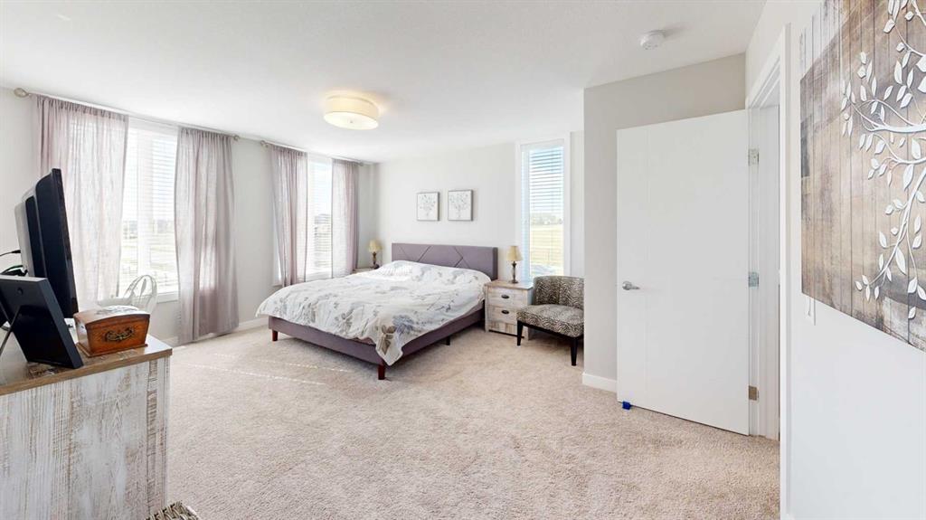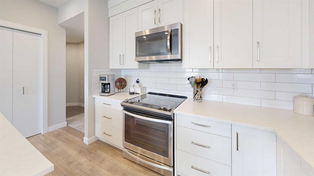 Welcome to this Stunning fully developed two-story townhome in the sought-after community of Drake Landing! This BuiltGreen, total of 4 bedrooms end-unit townhome offers a double attached rear garage and directly faces a town play park and green space, making it an ideal location for families or anyone who enjoys nature views. Inside, you will find a thoughtfully designed layout with quality finishes throughout. The main floor showcases an open-concept design with gorgeous kitchen boasting floor to ceiling stylish,white cabinetry with subway tile backsplash, a pantry, and oversized granite island with an attached dining table that is perfect for everyday meals or entertaining. Adjacent to the kitchen is the great room which features huge picture windows facing west showing off the greenspace. The lower level has been professionally developed boasting a recreation area, bedroom, which is large enough to accommodate a king sized bed, and full four piece bath. Upstairs offers comfort and convenience with a generous sized primary suite including walk-in closet and spa-like bath offering tub/shower, 2 sinks dropped into granite countertop and luxury plank flooring. There are 2 additional good-sized bedrooms plus a full four piece bath. And to top it off, a separate laundry room with shelving and storage areas completes the level. Additional highlights of the home features maintenance free Hardie board siding and a spacious front patio with metal rail fencing, perfect for enjoying the outdoors and park views. This home offers exceptional value, comfort, and location. Don’t miss the opportunity to make it yours—a must see!!