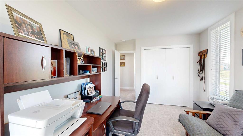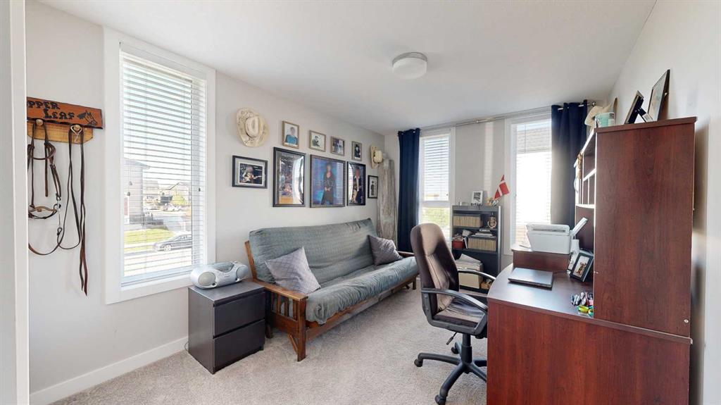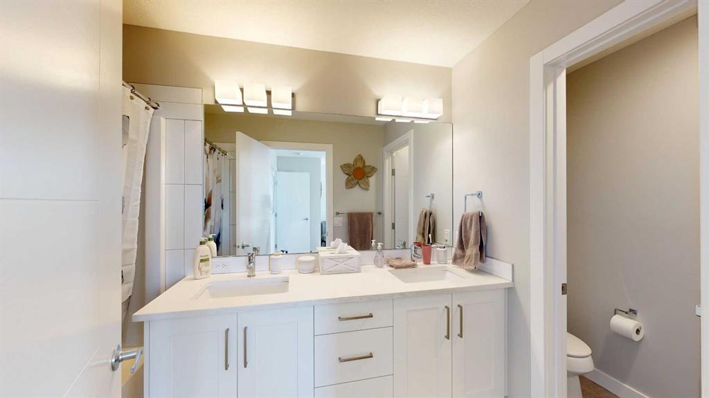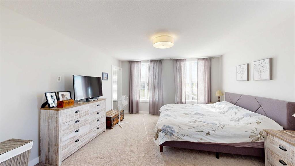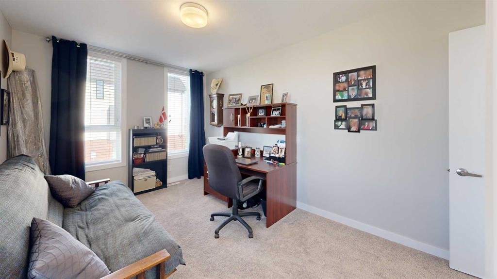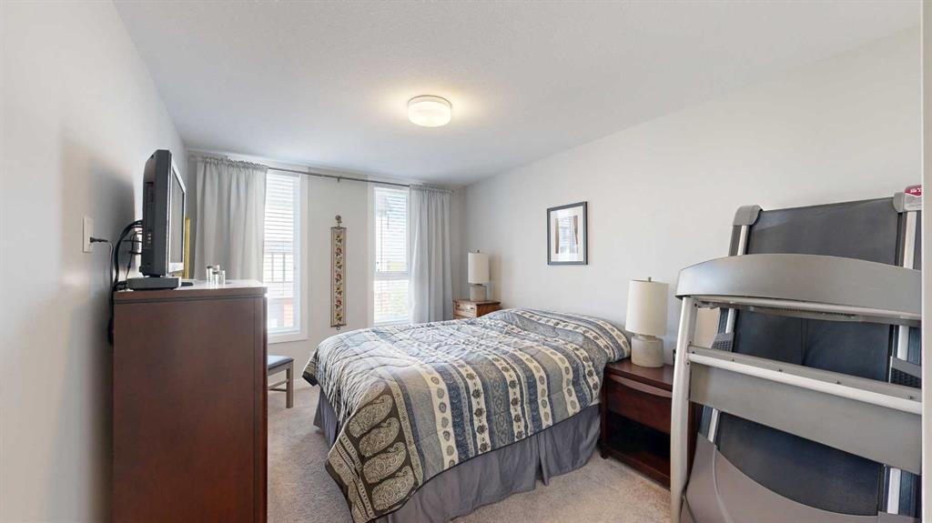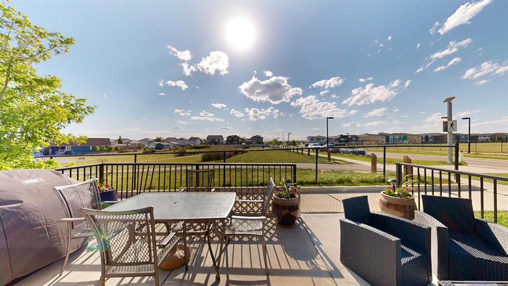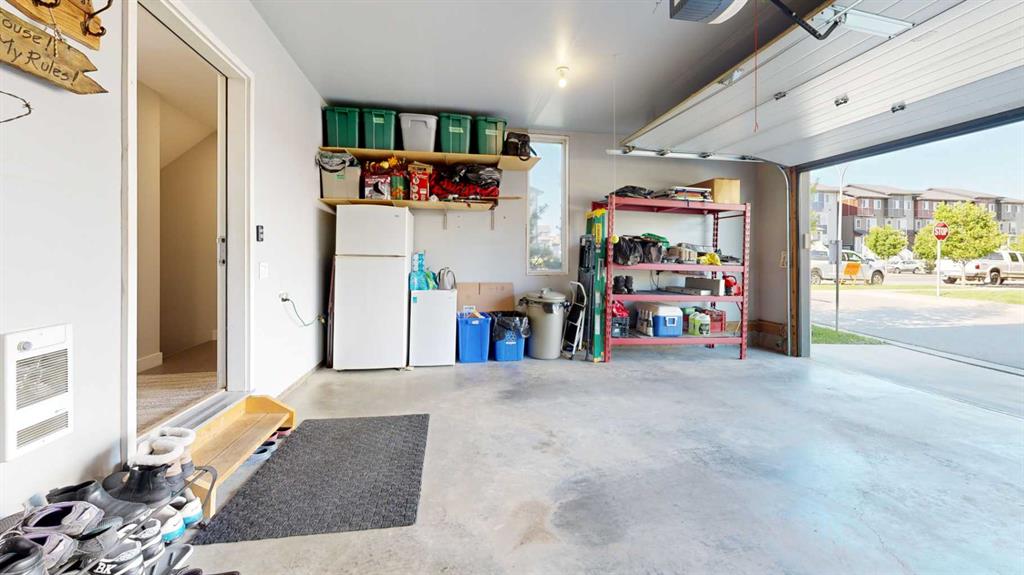 NEW PRICE on this stunning fully developed two-story townhome in the sought-after community of Drake Landing! This BuiltGreen, total of 4 bedrooms, 3 bathroom end-unit townhome offers a double attached rear garage and directly faces a town play park and green space, making it an ideal location for families or anyone who enjoys nature views. Inside, you will find a thoughtfully designed layout with quality finishes throughout. The main floor showcases an open-concept design with gorgeous kitchen boasting floor to ceiling stylish,white cabinetry with subway tile backsplash, a pantry, and oversized granite island with an attached dining table that is perfect for everyday meals or entertaining. Adjacent to the kitchen is the great room which features huge picture windows facing west showing off the greenspace. The lower level has been professionally developed boasting a recreation area, bedroom, which is large enough to accommodate a king sized bed, and full four piece bath. Upstairs offers comfort and convenience with a generous sized primary suite including walk-in closet and spa-like bath offering tub/shower, 2 sinks dropped into granite countertop and luxury plank flooring. There are 2 additional good-sized bedrooms plus a full four piece bath. And to top it off, a separate laundry room with shelving and storage areas completes the level. Additional highlights of the home features maintenance free Hardie board siding and a spacious front patio with metal rail fencing, perfect for enjoying the outdoors and park views. This home offers exceptional value, comfort, and location. Don’t miss the opportunity to make it yours—a must see!!