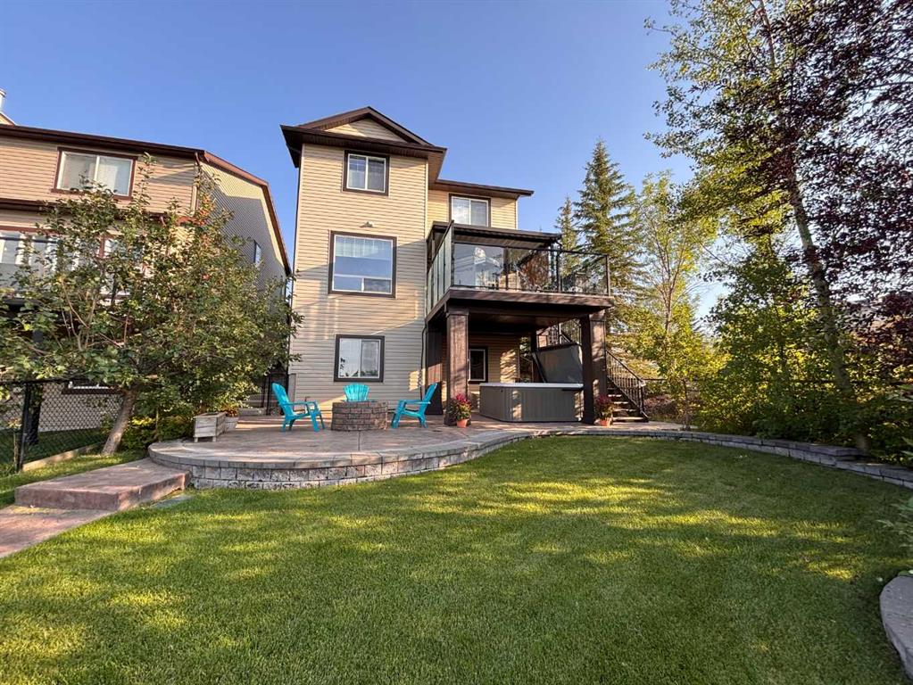 The walk-out lower level extends your lifestyle even further, opening directly to a private backyard oasis featuring a hot tub, fire pit area, stamped concrete patio and gate access to the adjacent pathway system. Inside, you’ll find a large rec room, a fourth bedroom, and a full bathroom—ideal for guests, teens, or additional family space.