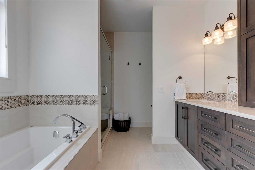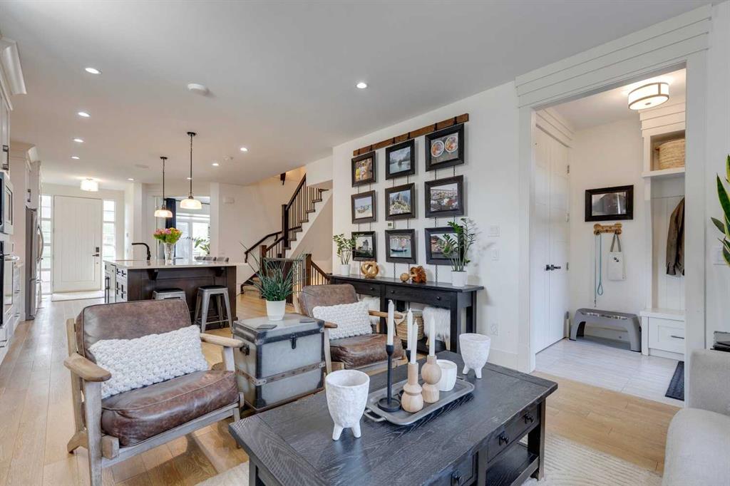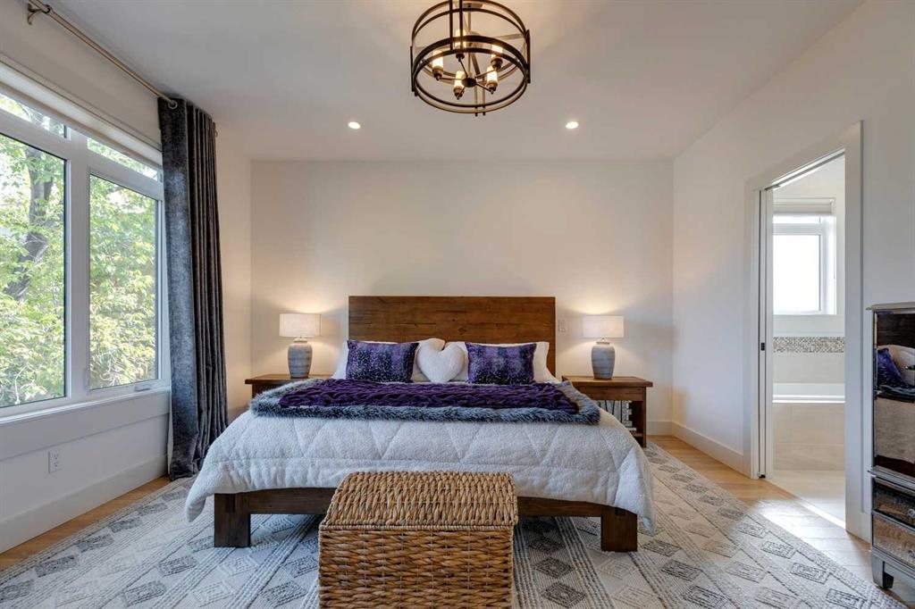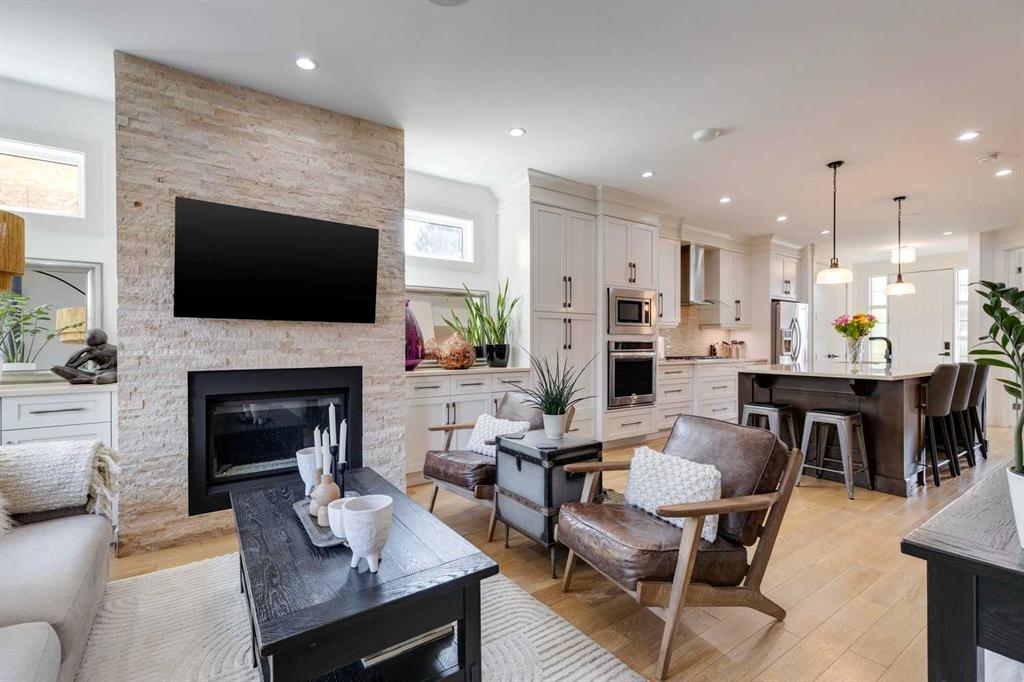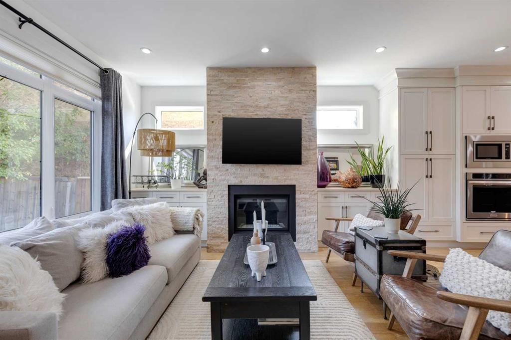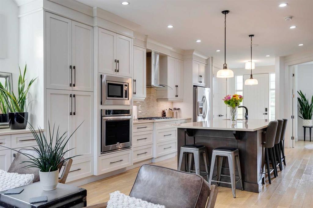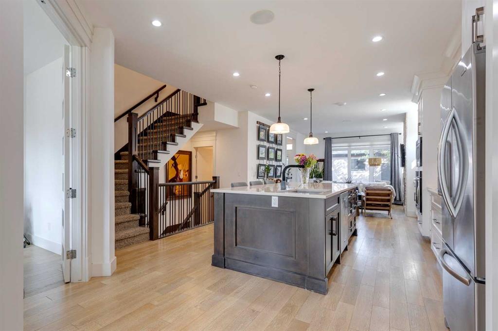 Located in the long established community of Mount Pleasant, this 3+1 bedroom home offers over over 2600 sq ft of developed living space! The open & airy main level presents hardwood floors & high ceilings, showcasing the front formal dining room that transitions effortlessly into the kitchen that’s tastefully finished with quartz counter tops, large island/eating bar, crisp white cabinets & high-end stainless steel appliance package. The living room is anchored by a striking floor to ceiling feature fireplace & custom built-ins. A mudroom & 2 piece powder room complete the main level. The second level hosts 3 bedrooms, a 4 piece bath & laundry room with sink & storage. The primary bedroom boasts a walk-in closet & secluded 5 piece ensuite with large vanity & dual sinks, relaxing soaker tub & separate shower. Basement development includes a large family/media room with wetbar – perfect for game or movie nights. The finishing touches to the basement are a fourth bedroom & 4 piece bath. Other notable features include central air conditioning, central vacuum system, Hunter Douglas blinds & built-in speakers throughout. Outside, enjoy the beautifully landscaped front garden & private back yard with patio & access to the double detached garage. The location is incredibly convenient, close to picturesque Confederation Park, Mount Pleasant Community Association, trendy Kensington, SAIT, schools, shopping, public transit & effortless access to downtown.