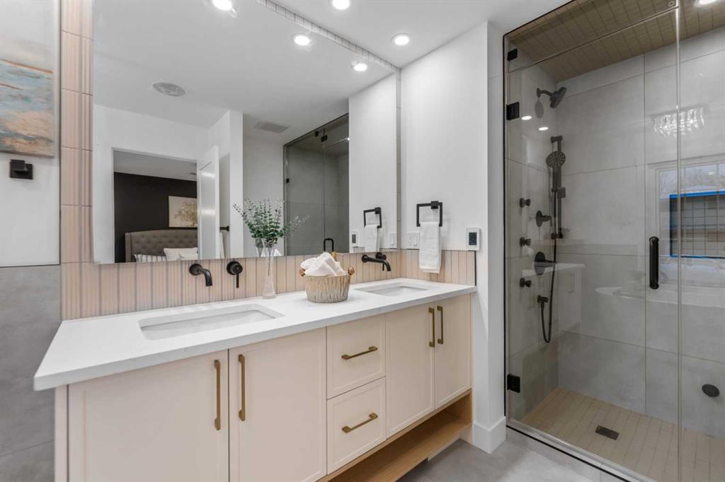 LARGE LOT | RENOVATED INSIDE AND OUT | BRIGHT & SPACIOUS | MODERN OPEN CONCEPT | 4 BEDS & 3 FULL BATHS | GYM | WET BAR | NEW AIR CONDTIONER | HEATED ENSUITE FLOOR | STEAM SHOWER | OVERSIZED DETACHED GARAGE.Welcome to your dream home in the sought after community of Lake Bonnavista! Fantastic location situated on a Large lot and walking distance to St.Boniface School and Lake Bonnavista School. This stunning home is completely remodeled with unlimited upgrades and features, with all the city permits and Engineer consultation, to give you the warmth of a home .Bright and spacious main floor with vaulted ceiling features a large front window which gives you plenty of sunlight and features a modern open concept with a living room, a cozy fireplace & a dining room. The brand new , elegant and tastefully designed kitchen is a dream for anybody and includes a large center island, premium quartz countertops, stainless steel appliances, gas range , and a lot of storage space,and above all a security camera screen for your security. The Oak railing adds more to the beauty of this home. Moving further, you are greeted with a primary bedroom with an attached 5 piece ensuite/w steam shower and walk in closet with lot of storage space for his and her. There is another good-sized room with a pocket door to the 4 Pc common washroom and a stackable laundry on the main floor for added convenience. The lower level has a large family room, a wet bar with fridge and a large gym with rubber floor. 2 additional bedrooms and a full washroom complete this floor. To add to all this, all the rooms in the basement have legal-size windows for added light. All new concrete in the front and back. The list goes on with a new hot water tank, roof shingles, siding, hardwood flooring , carpet, new plumbing,new electrical,etc etc . A must-see home…..Please call your realtor and book your showing.