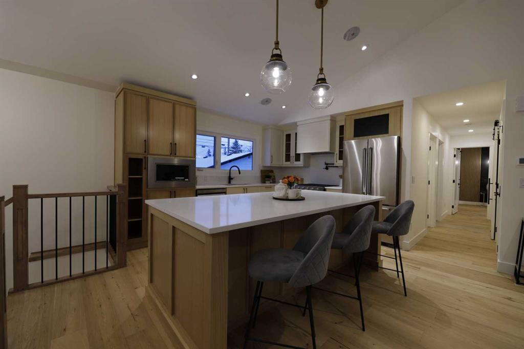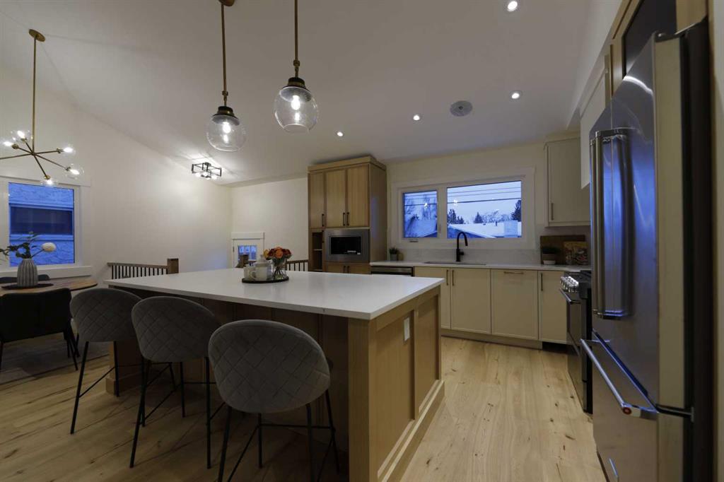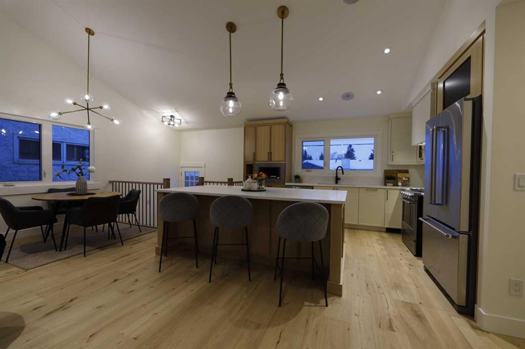 LARGE LOT | RENOVATED INSIDE AND OUT | BRIGHT & SPACIOUS | MODERN OPEN CONCEPT | 4 BEDS & 3 FULL BATHS | GYM | WET BAR | NEW AIR CONDTIONER | HEATED ENSUITE FLOOR | STEAM SHOWER | OVERSIZED DETACHED GARAGE.Welcome to your dream home in the sought after community of Lake Bonnavista! Fantastic location situated on a Large lot and walking distance to St.Boniface School and Lake Bonnavista School. This stunning home is completely remodeled with unlimited upgrades and features, with all the city permits and Engineer consultation, to give you the warmth of a home .Bright and spacious main floor with vaulted ceiling features a large front window which gives you plenty of sunlight and features a modern open concept with a living room, a cozy fireplace & a dining room. The brand new , elegant and tastefully designed kitchen is a dream for anybody and includes a large center island, premium quartz countertops, stainless steel appliances, gas range , and a lot of storage space,and above all a security camera screen for your security. The Oak railing adds more to the beauty of this home. Moving further, you are greeted with a primary bedroom with an attached 5 piece ensuite/w steam shower and walk in closet with lot of storage space for his and her. There is another good-sized room with a pocket door to the 4 Pc common washroom and a stackable laundry on the main floor for added convenience. The lower level has a large family room, a wet bar with fridge and a large gym with rubber floor. 2 additional bedrooms and a full washroom complete this floor. To add to all this, all the rooms in the basement have legal-size windows for added light. All new concrete in the front and back. The list goes on with a new hot water tank, roof shingles, siding, hardwood flooring , carpet, new plumbing,new electrical,etc etc . A must-see home…..Please call your realtor and book your showing.