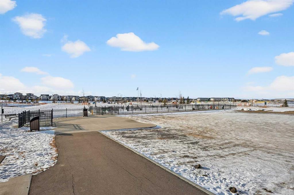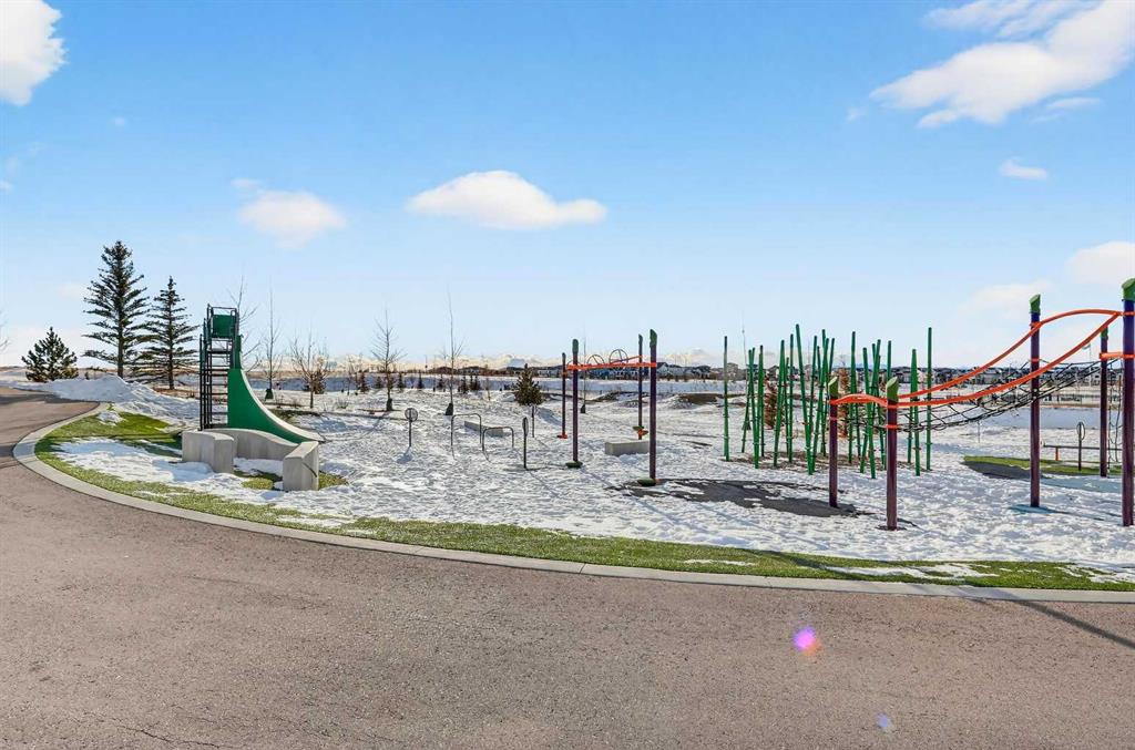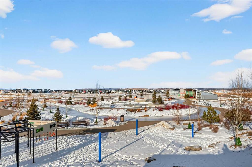 Experience the height of sophisticated living in this highly coveted luxury townhome, where a generous floor plan meets modern comfort and refined finishes. Proudly presented by StreetSide – this thoughtfully designed unit features 3 bedrooms, 2.5 bathrooms, and a front attached double car garage. The heart of the home is a spacious kitchen with a large central island, polished white quartz countertops, upgraded stainless steel appliances, and elegant sliding French patio doors that open to your covered deck area—ideal for both everyday living and entertaining. Light floods into the living room with ease through the large window, while luxury vinyl plank flooring flows throughout the main floor living areas, and carpeted stairs leading to the upper level and bedrooms provide extra warmth. The primary ensuite is a private sanctuary, complete with tile flooring, double sinks, a freestanding soaker tub, and an oversized tile-and-glass shower delivering spa-inspired comfort at home. The unfinished basement with roughed-in plumbing provides future potential for additional living space tailored to your needs. Professional landscaping and fencing complete your new home. Ideally located in the award-winning community of Harmony, residents enjoy Mickelson National Golf Course, private lake amenities, scenic walking and biking trails, and a wellness-focused lifestyle—just a shorty drive from Calgary city minutes and 45 minutes from the Rocky Mountains, where nature and convenience come together effortlessly