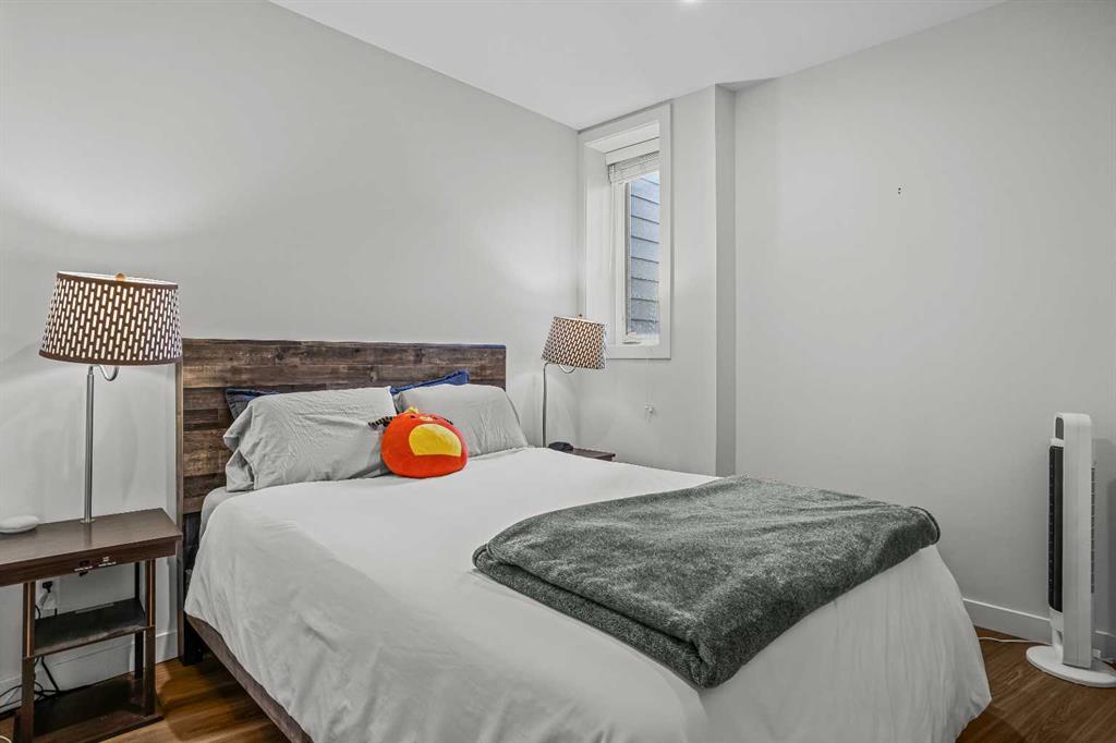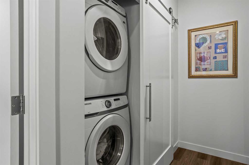 The spacious bedroom provides a quiet retreat with generous closet space and easy access to the well-appointed 4-piece bathroom. In-suite stacked laundry and additional storage add convenience and practicality.