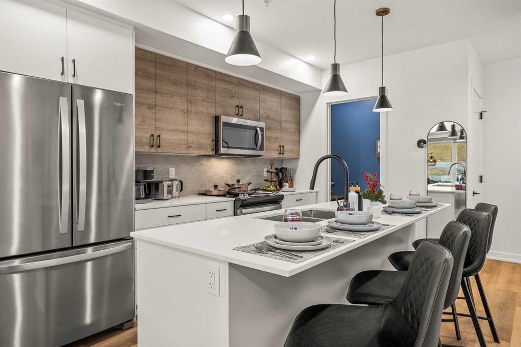 This executive 1-bedroom + office, 2-bathroom ground-level unit at Golden Ridge is one of Canmore’s newest luxury developments. Thoughtfully designed with premium finishes, this unit offers northeastern mountain views, a dedicated office space, and an open-concept layout that blends elegance with functionality, and a good-sized walk out patio to relax after a day in the sun. Guests will enjoy exclusive access to shared rooftop hot tubs with stunning northeastern mountain views along with a relaxing sauna, providing the ultimate alpine retreat. This unit comes fully furnished and turn-key ready, making it an incredible opportunity to capture Canmore’s lucrative short term rental market.
