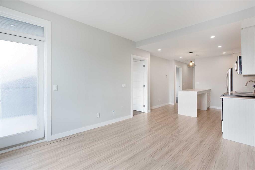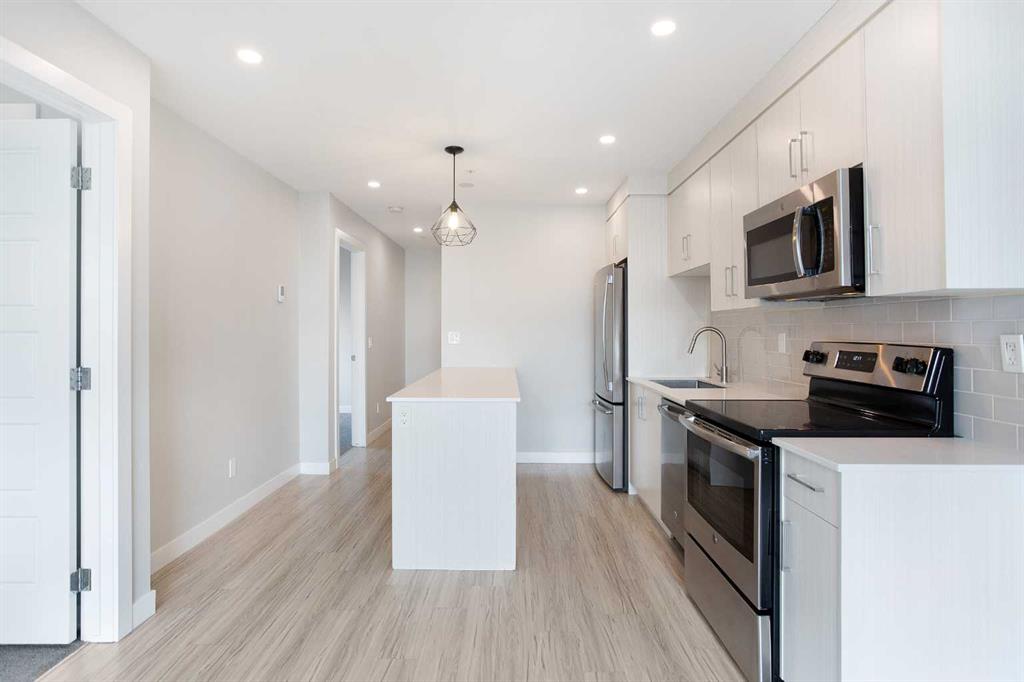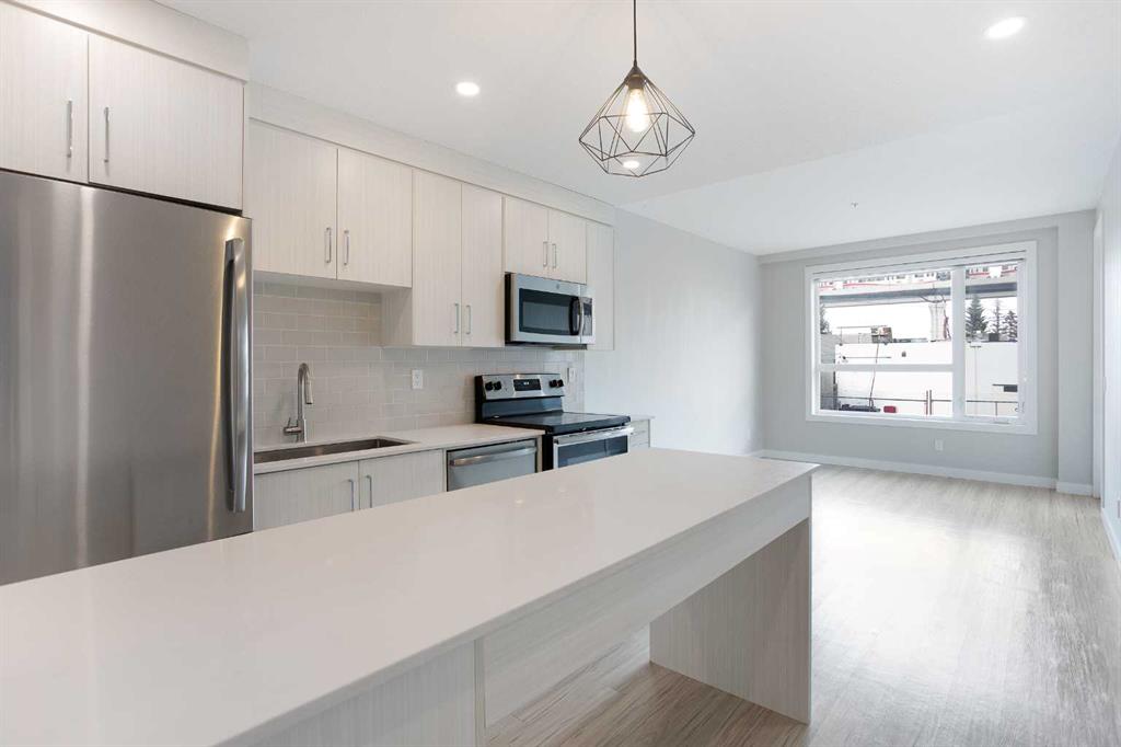 Amazing opportunity to live in or rent out this like new 2 bed, 2 full bath condo in Sunalta! Designed by BKDI-Zeidler and constructed by BMP. Has infloor heating throughout. One of the few newer builds in the area, built in 2019. The kitchen features stainless steel appliances, quartz countertops, and glass tile backsplash. Low maintenance vinyl plank flooring makes it ideal for an investment. Condo fee include heat and water. This spotless mainfloor unit comes with its own underground storage locker as well as outdoor parking. 9 foot ceilings throughout. The large windows make this unit bright and clean. Very easy to rent out and is only a 3 minute walk to Sunalta C Train station. Hurry! This offer won’t last long.