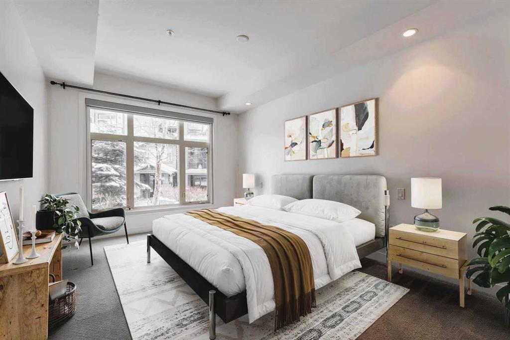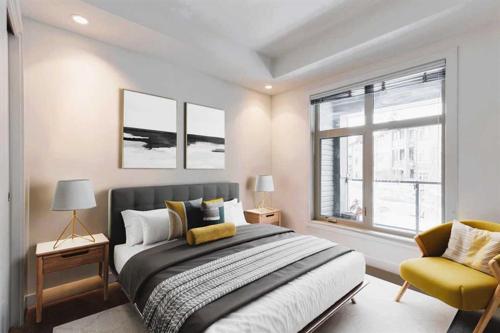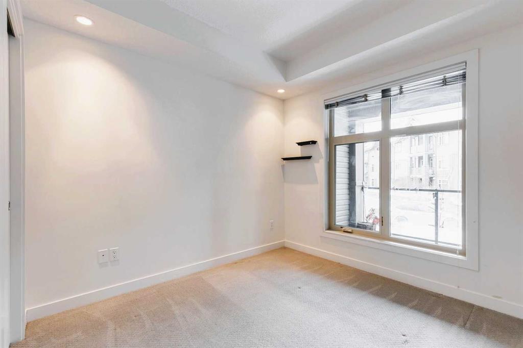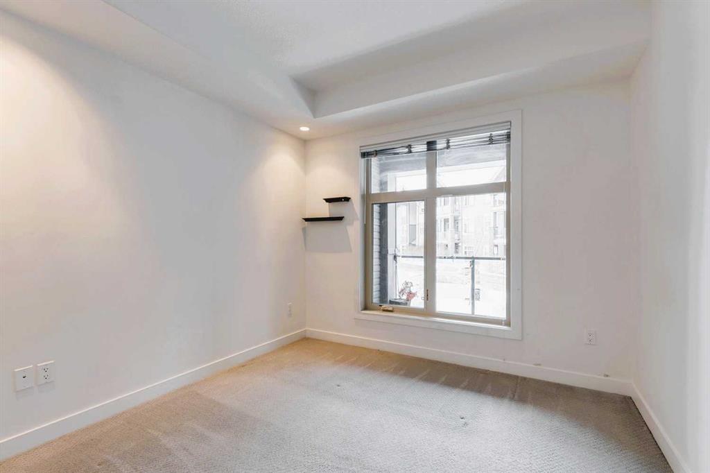 Welcome to Valmont at Aspen Stone—this main floor unit is where lifestyle, location, and luxury converge. Located directly across the street from from Guardian Angel School, and within a 10-minute radius of three of Calgary’s most esteemed private schools. Transit is effortless with four bus stops within a 5-minute walk and the 69th Street SW LRT station less than a 5 minutes drive away. For weekend escapes, Stoney Trail is only 7 minutes drive away, connecting you quickly to major highways. Leisure options abound with the nearest golf club just 10 minutes away, numerous parks and pathways for nature walks, and local gems like Blush Lane Organic Market and the famous Ladybug Café French bistro—just a 5-minute walk from your door. This beautifully appointed 2-bedroom, 2-bathroom condo offers 933 sq ft of thoughtfully designed living space. The kitchen is a true showpiece with waterfall granite countertops, stainless steel appliances, pendant lighting, and full-height cabinetry. The open-concept layout flows into the dining and living areas, enhanced by motorized remote-control sheer blinds, a Bose home theatre system, and a portable air conditioner included for year-round comfort. Large windows provide serene garden views, while the privacy-focused floorplan places bedrooms on opposite sides of the unit. The primary suite features a walk-through closet, blackout blinds, and a spa-inspired ensuite with soaker tub and tiled glass shower. A spacious in-suite laundry room adds convenience and storage. Additional perks include a heated underground parking stall located near the elevator, a separate storage locker, and a quiet location within the building. Residents enjoy fitness facilities, guest suites, a car wash, and ample visitor parking—all in a well-maintained, pet-friendly community. THIS UNIT OFFERS A RARE BLEND OF LUXURY FINISHES, UNBEATABLE LOCATION, AND EVERYDAY CONVENIENCE IN ASPEN WOODS —PERFECT FOR FAMILIES, PROFESSIONALS, OR INVESTORS.