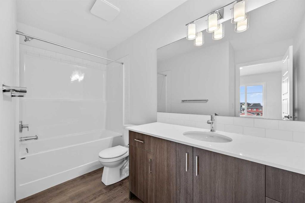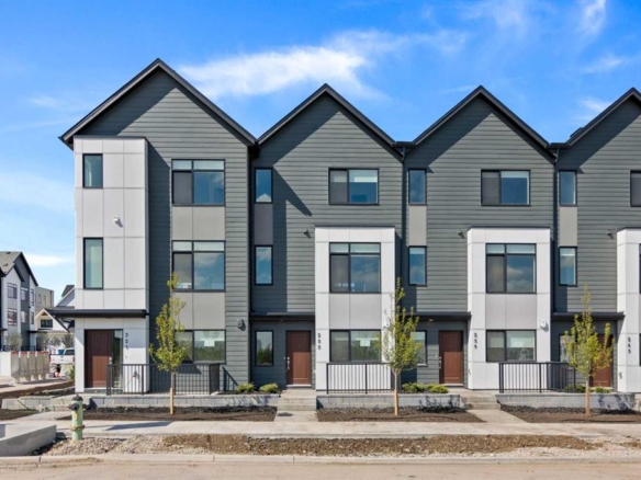 StreetSide proudly presents this highly desired interior-unit townhome that offers a sophisticated blend of expansive living space and elegant modern finishes. Designed with versatility in mind, the residence features four spacious bedrooms—including a convenient lower level bedroom ideal for guests or a home office—and two and a half well appointed bathrooms. The heart of the home is an open-concept main floor that flows seamlessly onto a private balcony, perfect for indoor-outdoor entertaining. Culinary enthusiasts will appreciate the chef-inspired kitchen, which comes standard with modern dark slab-style cabinetry, a full bank of storage drawers, polished white quartz countertops, and premium stainless steel appliances. The interior aesthetic is defined by contemporary durability, featuring luxury vinyl flooring throughout the primary areas and premium 8lb underlay carpet for added comfort on the stairs and upper level. Practicality meets luxury with a dedicated upper-level laundry room and an attached double car garage. Located within Redstone Square this home places you at the heart of the dynamic Redstone neighborhood. Enjoy the ease of a convenient location with quick access to major routes, including Stoney Trail, ensuring you are never far from the city’s best. The community is strategically positioned near future commercial developments, promising shops, services, dining, and entertainment options just moments from your doorstep.