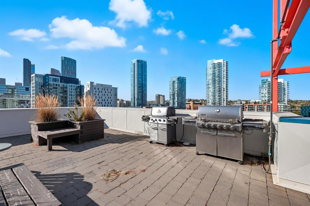 East-facing windows plus access to a communal rooftop patio with incredible downtown views