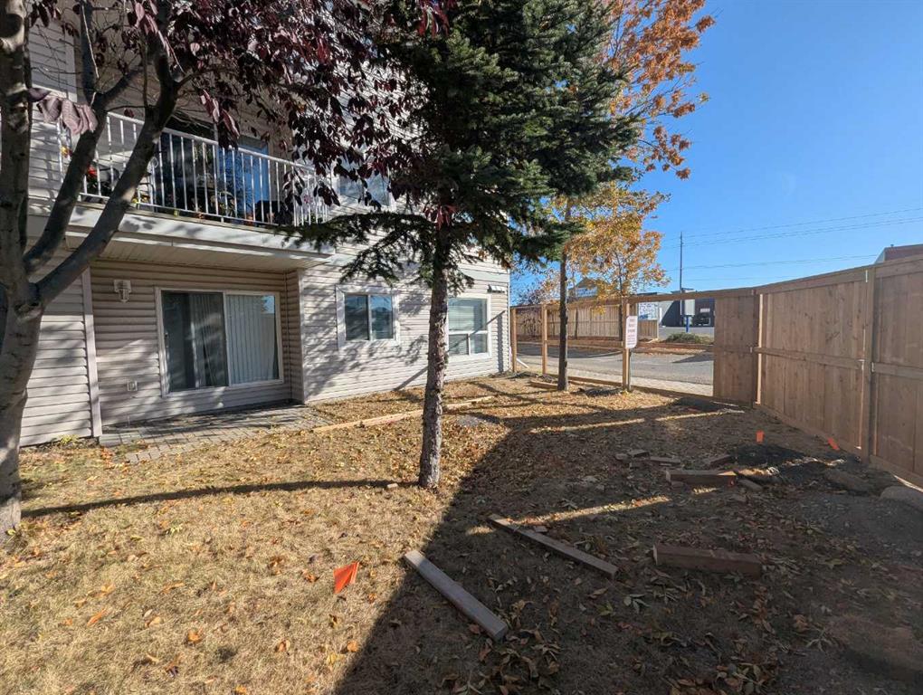 Wooden Fence is installed in back yard, check photos | AMAZING OPPORTUNITY TO OWN THE CORNER UNIT IN THE MAIN FLOOR. OPEN CONCEPT LIVING ROOM AND DINING ROOM ADJACENT TO EACH OTHER, GREAT FOR ENTERTAINMENT. LIVING ROOM IS FLOODED WITH NATURAL LIGHT FROM A WIDE SLIDING GLASS DOOR AS ACCESS TO THE FRONT PATIO GREAT FOR SUMMER BARBECUING. KITCHEN HAS WHITE CABINETRY AND AN ISLAND THAT CAN ACCOMODATE TWO BAR STOOLS. PRIMARY BEDROOM IS GENEROUSLY SIZE WITH A BIG WINDOW AND WALK IN CLOSET, AND ACCESS TO THE FULL BATH. SECOND BEDROOM IS ALSO A GOOD SIZE BEDROOM WITH BIG WINDOW. THERE IS A LARGE STORAGE ROOM WITH AN EN-SUITE LAUNDRY FOR YOUR CONVENIENCE. Electricity is included in the condo fees—adding to the affordability and ease of living here. Situated just steps from shopping, schools, restaurants, and public transit, this location offers unbeatable everyday convenience. Perfect for first-time buyers, downsizers, small families, or investors, this move-in ready home also includes a dedicated outdoor parking stall. Don’t miss out—schedule your private showing today!