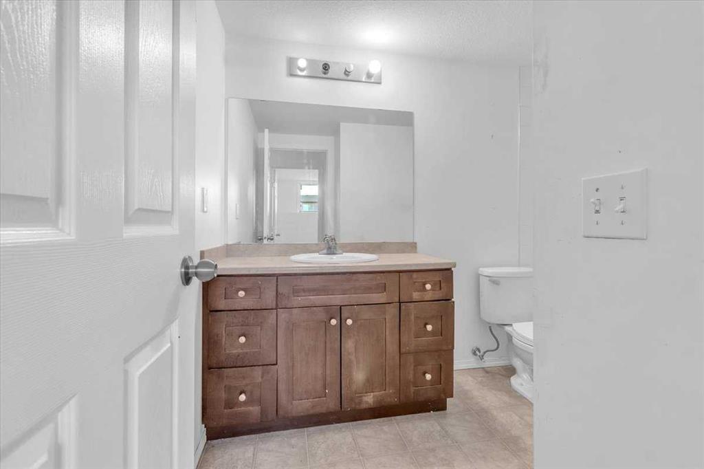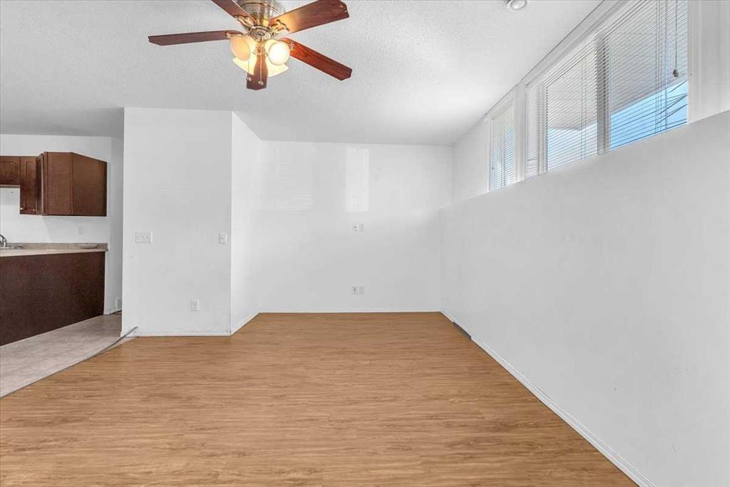 WOW! If you’re looking for a fixer upper, look no further. This home has it all! No need to worry about the previous “designer” choosing the wrong shade of grey and installing shag carpet instead of LVP. This renovation is YOU and only YOU. Flooring- you choose; cabinets that need refinishing (do you freshen up the brown, go white or perhaps navy blue with gold- simply stunning!!), and walls that need painting (always make sure you repair holes, cracks and other imperfections before painting) . You might just become besties with the staff at your local hardware store. So what are you renovating? The foyer leads down the stairs to an open concept living area complete with a large living room, breakfast nook and U shaped kitchen with stainless steel appliances (AS IS). Down the hall, you’ll find both bedrooms with one bedroom having a massive walk-in closet (the second one doesn’t have a closet). The 4 piece bathroom is tucked away and the laundry room/utility room is centrally located. There’s a parking stall very close to the front door…just back that truck up with your tools and supplies. You are 4 minutes from the highway, and only 30 minutes to the south end of Calgary. You are a 5 minute walk from Sunshine Lake, which is beautiful this time of year if you can avoid the cobra chickens (aka geese). Call your favourite agent and local renovation contractor to book a showing! You have our permission to keep your shoes on while you view. The entire property is below grade but added to the Total Above Grade area per the ‘Exception for below grade properties’ that is part of RMS Principle 5.