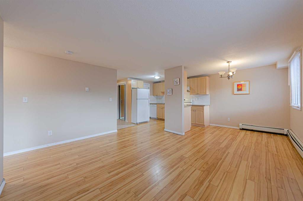 Calling all first time buyers and investors! Great 2 bedrooms & one bath concrete building centrally located in NW Calgary under $160K! Prime location with walking distance to library, arena, swimming pool, Bus, shopping and schools! With over 700sqft of living space, this condo unit features an open plan. Bright SW facing living room has 2 big windows allows tons of natural lights floods on updated laminate floor. Functional kitchen has white appliances and a huge walk-in pantry great for food storage. Good sized master bedroom has double mirror closets easy to fit a king size bed. 2nd bedroom also has a closet with 2 mirror doors. 4pcs main bath off the bedrooms to provide maximum convenience. To complete the package, there’s also a onsite laundry room with a stacked washer/dryer, as well as an assigned parking stall in the underground parking pad. Estimate market monthly rent for this unit is $1300-$1400…take advantage of the low interest rate and grab this fantastic deal of today’s market!**Back from pending due to financing**