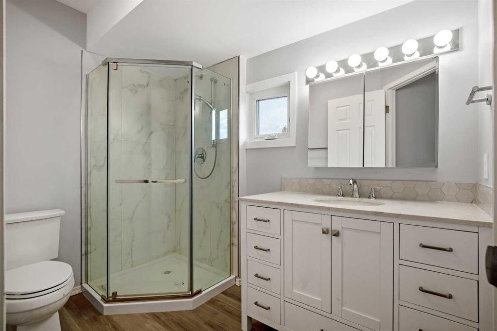 The upper floor features three generous bedrooms, including a spacious primary suite with its own renovated ensuite. The full main bathroom has also been extensively updated with new vanity, fixtures, flooring, and tile work.
