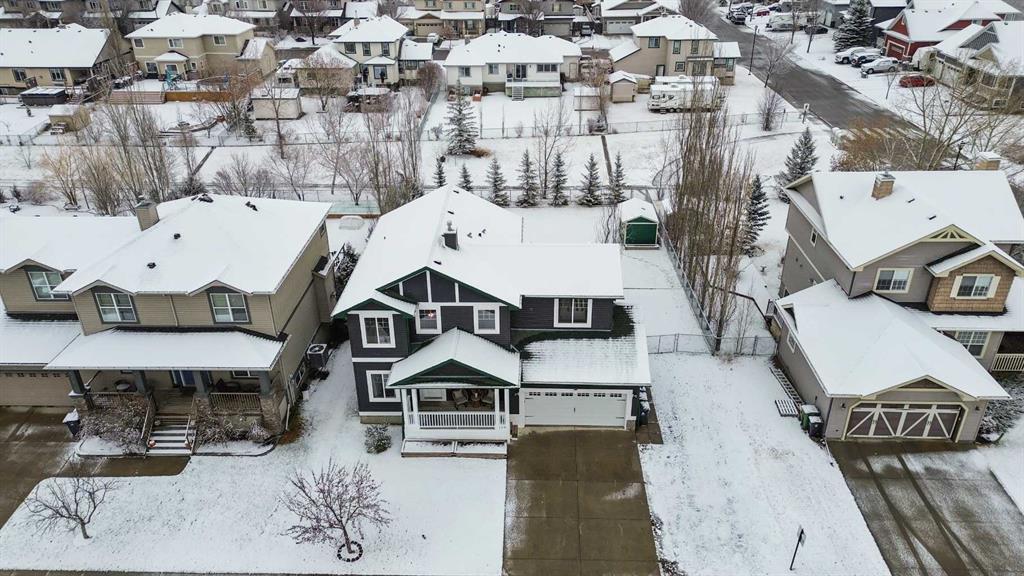 Welcome to this Beautifully Updated Home on a Quiet Cul-de-sac in the Charming Community of Langdon! Situated on nearly a ¼-Acre Lot Backing onto Green Space, this Property offers Privacy, Space, and Small-Town Living at its Best. The Bright, Open-to-Above Entryway and Fresh Paint create a Modern, Inviting Feel. The Open-Concept Main Floor features a Spacious Living Room, Dining Area, and Updated Kitchen with Stainless Steel Appliances, Granite Countertops, a Large Island, and plenty of Cabinetry. A Main-Floor Office, 2-piece Bath, and Mudroom complete this level. Upstairs, the Primary Suite is set apart for Privacy and includes a 4-piece Ensuite and Walk-in closet. A central Bonus Room with Flex Area leads to Two Additional Bedrooms, a Full Bath, and convenient Upper Laundry. The Lower Level is Partially Developed with a Completed 4-piece Bath and a Walk-Up Entrance to a Patio. With three Large Windows, this space is Bright and Ready for your Finishing touches. The Heated, Painted, and Tiled Garage is a Standout Feature, along with New Siding (2022), New Garage Door and Opener (2022). The 0.21-Acre Yard is Beautifully Landscaped with a Large Deck, Fire Pit Area, Mature Trees, and a Large Storage Shed. A Covered Dog Run extends from the garage and can double as covered storage. An 80-ft Gravel Driveway provides Ample Parking for Trailers or Guests. Langdon offers Small-Town Charm, Great Schools, and Convenient Access to Calgary and nearby Amenities. Don’t miss this Incredible Opportunity to own a Beautiful Home in this Welcoming Community!