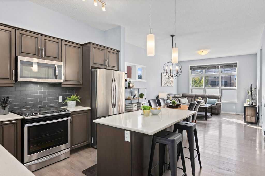 One of the LOWEST PRICED homes in Mahogany! This 3-bedroom, 2.5-bathroom bungalow is brimming with upgrades, including AC, a HUMIDIFIER, SMART THERMOSTAT, WATER SOFTENER and NEW CARPETS. Step inside to discover a bright, open-concept main floor with soaring ceilings and LARGE WINDOWS that fill the home with natural light. The gourmet kitchen is a chef’s delight, complete with sleek QUARTZ countertops, a GAS STOVE, premium STAINLESS-STEEL APPLIANCES, a stylish tile backsplash, and a central island—perfect for entertaining or casual meals. A spacious pantry adds practical STORAGE to this elegant space. The main floor also features an inviting living room and dedicated dining area, along with a private primary suite boasting large closets and a luxurious 4-piece ensuite with dual sinks and a glass-enclosed shower. A convenient MAIN- FLOOR LAUNDRY room, 2-piece powder room, and LUXURY VINYL PLANK FLOORING complete the level.