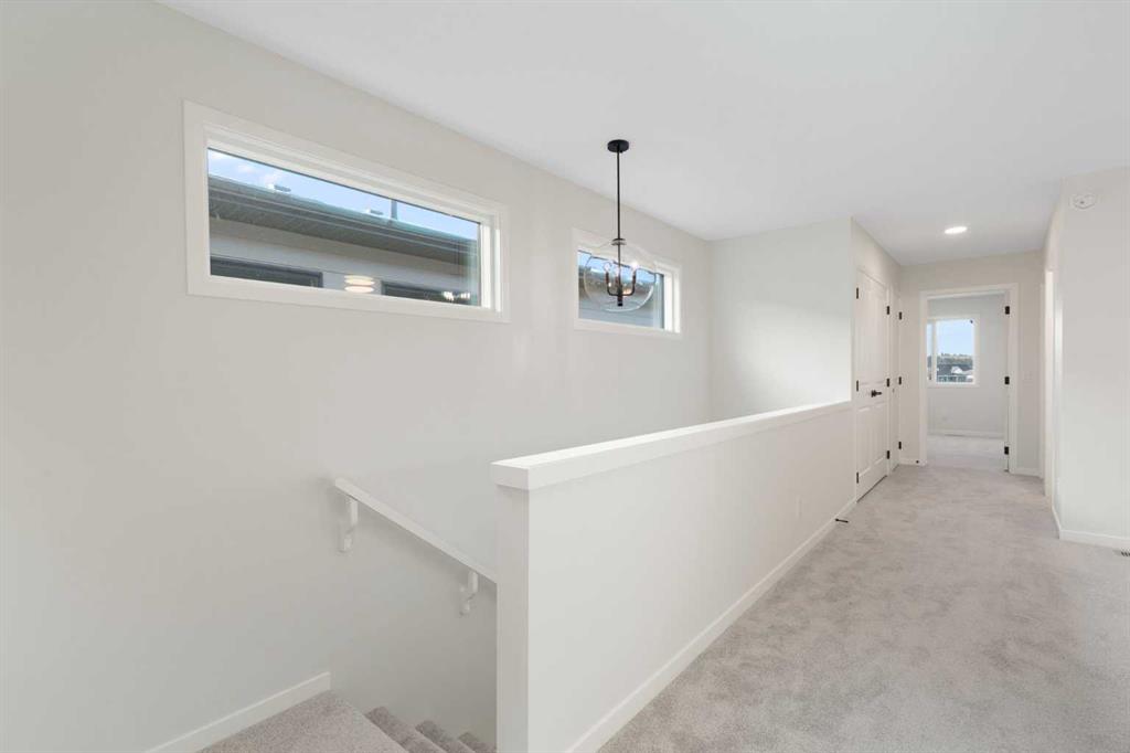 Step inside and feel it – that rare mix of calm sophistication and instant comfort. This stunning paired home in Rockland Park was designed for the way modern families truly live: open, elegant, and filled with natural light. Every detail has been carefully selected, from the warm oak flooring underfoot to the crisp white shaker cabinetry and soft quartz countertops that define the heart of the home. The kitchen is the showpiece – bright, functional, and beautifully connected to the dining nook and great room beyond. A generous island invites family and friends to gather, while the walk-in pantry keeps everything organized behind the scenes. Step through sliding doors to the rear deck, where evenings are made for barbecues, sunsets, and unwinding after a long day. The main floor offers a great sized flex room making the perfect study/office, kids play room, reading room, etc. Upstairs, the layout was designed for both connection and retreat. The primary suite feels like a private sanctuary with its spa-inspired ensuite – dual sinks, glass shower, and a walk-in closet that makes mornings effortless. The bonus room offers a versatile family hub, flanked by two additional bedrooms, a full bath, and a conveniently located laundry room. What truly sets this home apart is its separate side entrance and suite-ready basement, already roughed in for a future secondary suite (subject to city approval & permit). It’s a smart investment in flexibility – whether you dream of a place for guests, rental income, or multi-generational living. Throughout, the design strikes a perfect balance between modern minimalism and everyday warmth. The combination of light cabinetry, natural wood tones, and soft greige finishes creates a timeless look that feels fresh, bright, and inviting. Located in the highly sought-after community of Rockland Park, you’ll enjoy the perfect blend of nature and convenience – with river pathways, parks, and future retail amenities just steps from your door. This is more than just a home; it’s where style meets substance, where design meets function, and where every day feels a little more elevated. Book your private showing today and experience the lifestyle waiting for you in Rockland Park.
