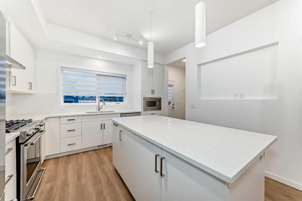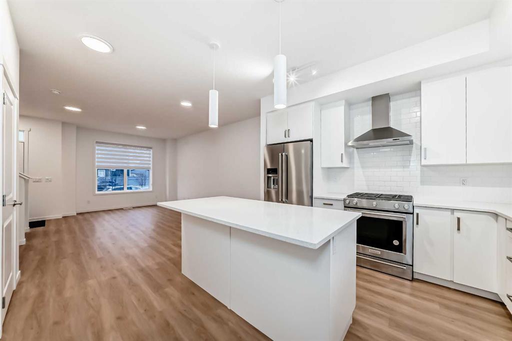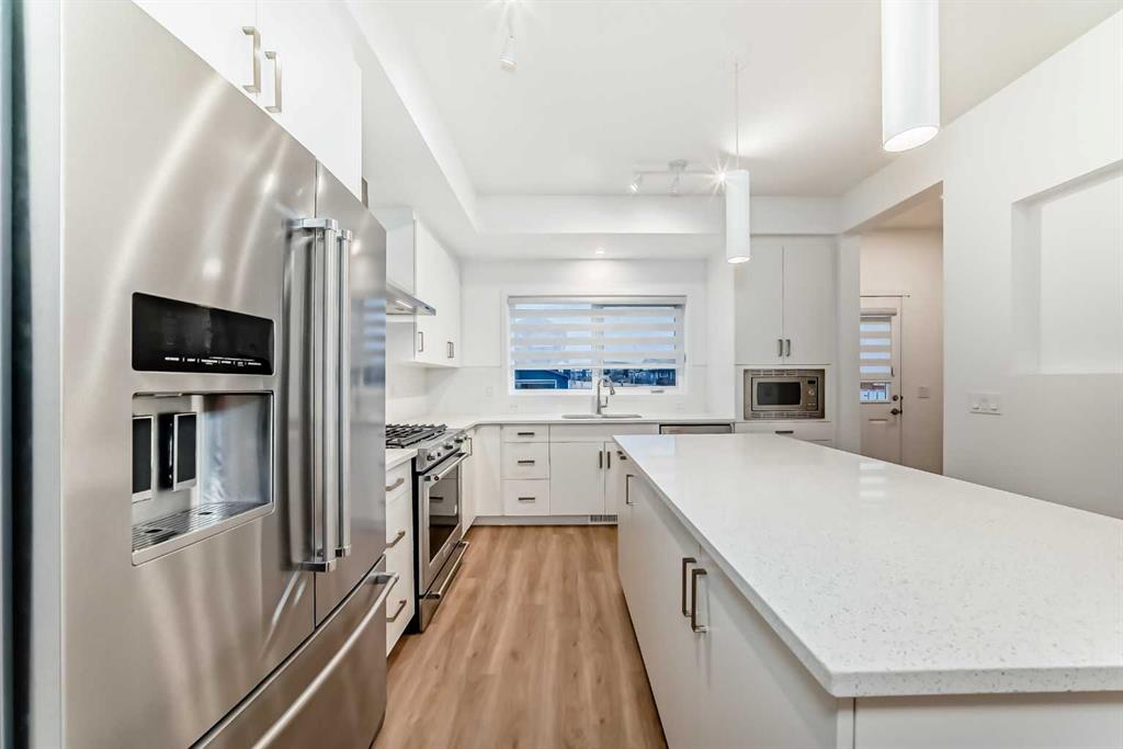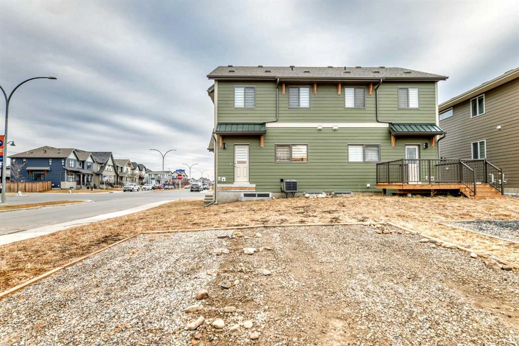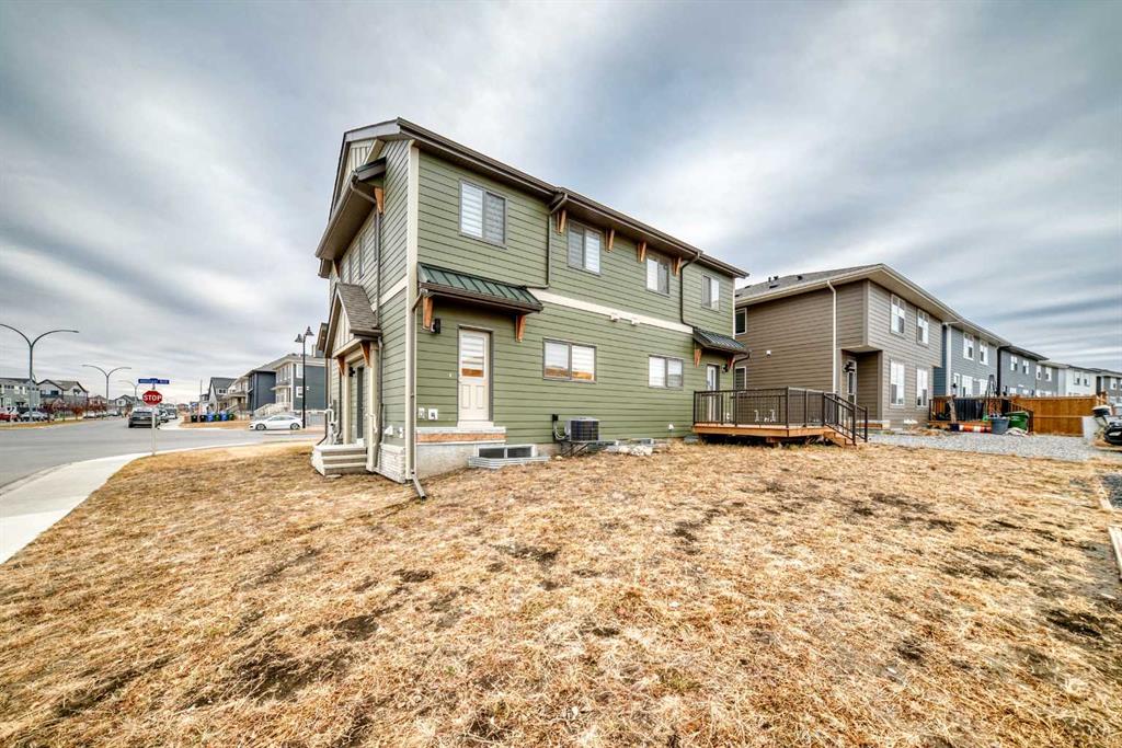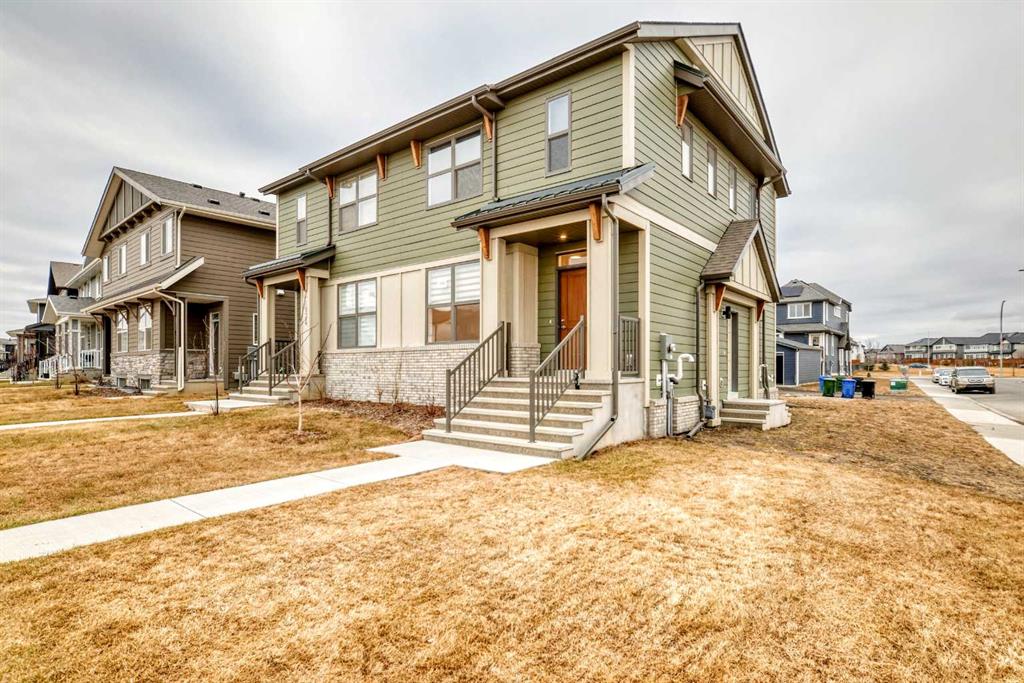 Discover exceptional comfort and modern style in this almost new semi-detached home, ideally positioned on a desirable corner lot in one of the city’s most sought-after lake communities. Immaculately maintained and barely lived in, this residence exudes a bright, fresh ambiance from the moment you step inside. Designed for today’s lifestyle, the open-concept main floor showcases an airy, contemporary palette complemented by expansive windows and thoughtfully curated finishes. Luxury vinyl plank flooring flows seamlessly from the spacious great room—with its oversized feature window—into the designated dining area and onward to the stunning chef-inspired kitchen. Here, a generous central island with quartz countertops anchors the space, paired with sleek stainless steel Kitchenaid appliances including a French-door refrigerator with ice and water, built-in microwave, dishwasher, an upgraded gas range and pull-out garbage for ease of convenience. The classic subway tile frames in the designer hood fan compliments the capped cabinetry and modern fixtures. The upper level features three spacious, sun-filled bedrooms—each offering a clean, minimalistic backdrop ready for your personal touch. The primary suite is a true retreat, complete with a 4-piece ensuite bathroom and a walk-in closet for added comfort and convenience. An additional 3-piece bathroom on this level provides thoughtful functionality for family members or guests. All bathrooms throughout the home highlight elegant quartz countertops, wood-grain vanities, curved shower rods and marble-style tile for a refined, cohesive look. A dedicated upstairs laundry room, complete with an LG ThinQ washer and dryer, enhances everyday convenience for busy families. Additional features include custom blinds on all windows and Carrier central air conditioning for year-round comfort. A separate side entrance with precast stairs adds flexibility and potential for future development, a home-based business, or multigenerational living. Durable Hardie Board siding enhances both style and longevity on this spacious corner lot. Located within a vibrant lake community, residents enjoy year-round access to bicycle and walking paths, beach, water activities, and a welcoming community atmosphere—while being just minutes from schools, shopping, and major commuter routes. Whether you’re a first-time buyer, investor, or downsizer, this move-in-ready property offers exceptional value, modern design, and an unbeatable location. Don’t miss this rare opportunity to make it yours.