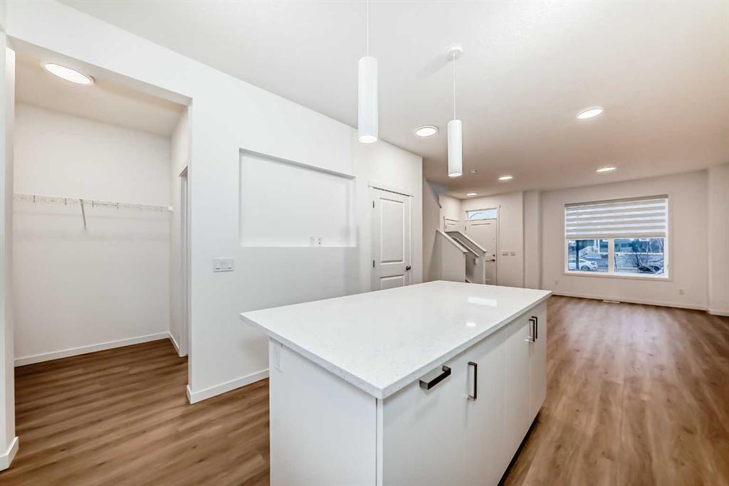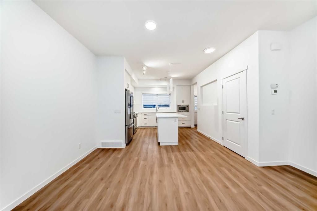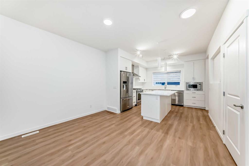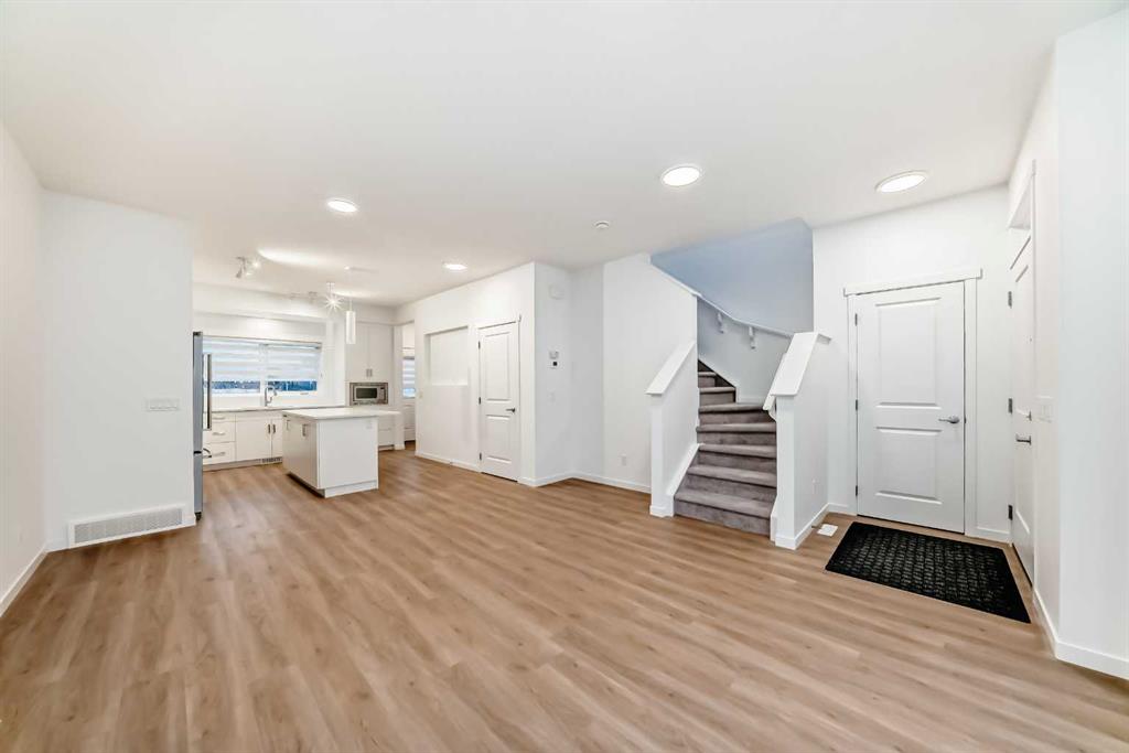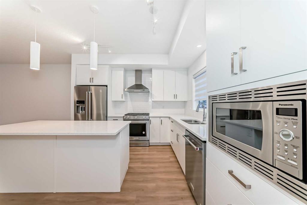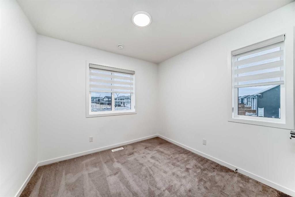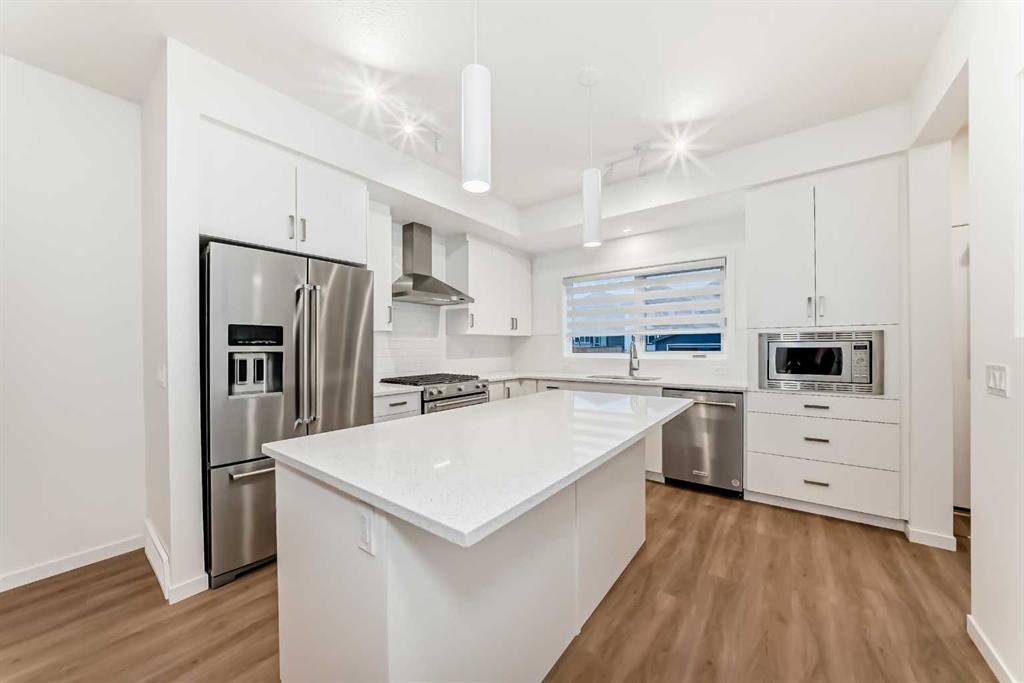 Discover exceptional comfort and modern style in this almost new semi-detached home, ideally positioned on a desirable corner lot in one of the city’s most sought-after lake communities. Immaculately maintained and barely lived in, this residence exudes a bright, fresh ambiance from the moment you step inside. Designed for today’s lifestyle, the open-concept main floor showcases an airy, contemporary palette complemented by expansive windows and thoughtfully curated finishes. Luxury vinyl plank flooring flows seamlessly from the spacious great room—with its oversized feature window—into the designated dining area and onward to the stunning chef-inspired kitchen. Here, a generous central island with quartz countertops anchors the space, paired with sleek stainless steel Kitchenaid appliances including a French-door refrigerator with ice and water, built-in microwave, dishwasher, an upgraded gas range and pull-out garbage for ease of convenience. The classic subway tile frames in the designer hood fan compliments the capped cabinetry and modern fixtures. The upper level features three spacious, sun-filled bedrooms—each offering a clean, minimalistic backdrop ready for your personal touch. The primary suite is a true retreat, complete with a 4-piece ensuite bathroom and a walk-in closet for added comfort and convenience. An additional 3-piece bathroom on this level provides thoughtful functionality for family members or guests. All bathrooms throughout the home highlight elegant quartz countertops, wood-grain vanities, curved shower rods and marble-style tile for a refined, cohesive look. A dedicated upstairs laundry room, complete with an LG ThinQ washer and dryer, enhances everyday convenience for busy families. Additional features include custom blinds on all windows and Carrier central air conditioning for year-round comfort. A separate side entrance with precast stairs adds flexibility and potential for future development, a home-based business, or multigenerational living. Durable Hardie Board siding enhances both style and longevity on this spacious corner lot. Located within a vibrant lake community, residents enjoy year-round access to bicycle and walking paths, beach, water activities, and a welcoming community atmosphere—while being just minutes from schools, shopping, and major commuter routes. Whether you’re a first-time buyer, investor, or downsizer, this move-in-ready property offers exceptional value, modern design, and an unbeatable location. Don’t miss this rare opportunity to make it yours.