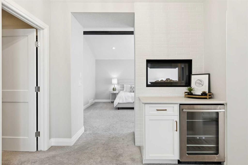 The lower level continues the thoughtful design with 9-foot ceilings and heated hardwood floors throughout. A spacious rec room, dedicated gym, and fully equipped second kitchen make this level ideal for entertaining or everyday flexibility. Just off the kitchen is a dedicated wine and storage room, adding both function and character. A fifth bedroom and full bath complete the space.