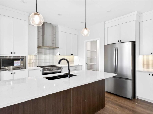 Welcome to the perfect starter home in the sought after community of Coopers Crossing! Built by award-winning builder McKee Homes, walking distance to the Coopers Promenade. It’s perfect for family living with two spacious master bedrooms, and a rear double car garage. The kitchen boasts upgraded cabinetry with two banks of drawers, quartz countertops, stainless steel appliances, and a large pantry. Enjoy luxury vinyl plank flooring throughout the main floor, large windows that flood the space with natural light, and exquisite designer detailing. Upstairs, the owner’s suite features a walk-in closet and ensuite, complemented by two additional bedrooms, a full bathroom, and a laundry room. Take advantage of this incredible opportunity to own a brand-new home in one of the last remaining opportunities in Coopers Crossing.
