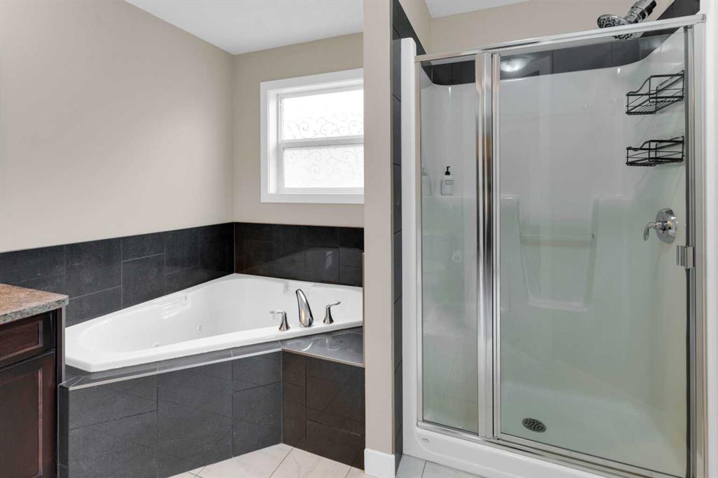 Upstairs offers three spacious bedrooms, including a large primary retreat measuring approximately 18′ x 13′, featuring a walk-in closet and a private 4-piece ensuite with jetted tub and separate shower. Two additional bedrooms (each over 140 sq ft), a full 4-piece main bathroom, and convenient upper-level laundry add to the functionality of this floor.