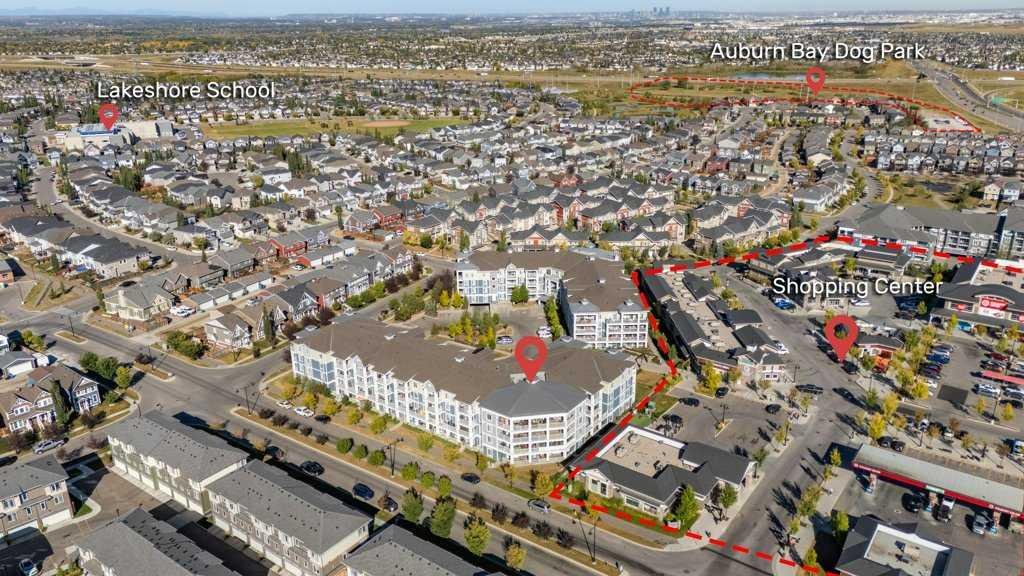 Welcome to this executive 2-bedroom, 2-bath condo in the desirable lake community of Auburn Bay! This superior Muskoka main floor corner unit is the largest floorplan in the building’s design, and with 9-foot high ceilings, it offers a spacious, light-filled layout that truly stands out. This Condo is perfect for those who are looking to downsize without compromising space and storage. From the moment you step inside, the large foyer sets the tone with plenty of room to welcome family and guests. The luxury vinyl plank flooring flows seamlessly into the beautifully upgraded kitchen, featuring an oversized quartz island with farmhouse-style undermount sink—perfect for extra seating and casual dining. The kitchen is a chef’s dream with: upgraded stainless steel appliance package (including built-in wall oven & microwave), Ceramic cooktop range with hood fan, refrigerator with water line, 42″ upper cabinets, pot drawers & under-cabinet lighting, and Bonus extra cabinetry on the opposite wall. The bright, modern color palette makes this space both functional and stylish. There’s also plenty of room for a full dining table, so you don’t have to compromise on entertaining. The spacious living room is enhanced with custom shelving and cabinetry for storage and a perfect TV nook. From here, step out onto your expansive covered patio with a gas BBQ line—ideal for year-round outdoor enjoyment. The primary suite is a true retreat, benefiting from corner-unit windows that flood the room with natural light. The spa-inspired ensuite features: Dual undermount vanities with quartz counters, Walk-in glass shower with full-height designer tile and walk-in closet for ample storage. The second bedroom is bright and versatile, with a cheater door to the second full bathroom, which boasts matching quartz counters and upgraded finishes. Also included is your own in suite laundry with full sized stacked washer and dryer, (1) Titled underground heated parking stall, an assigned storage locker conveniently located right in front of your parking spot, plenty of visitor parking. Best of all, this building is PET FRIENDLY and just steps to shops, groceries, dining, and more. Plus, as part of the Auburn Bay community, you’ll enjoy exclusive year-round lake access—swimming, skating, paddleboarding, or simply relaxing at the beach. This rare floorplan doesn’t come to market often—don’t miss your opportunity to call it home!