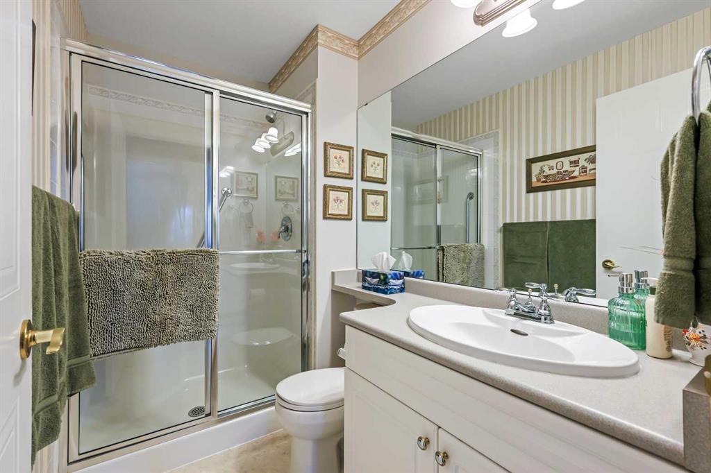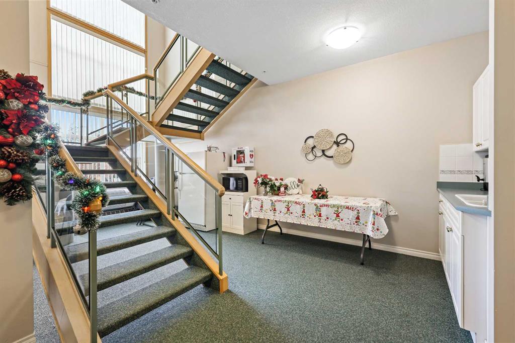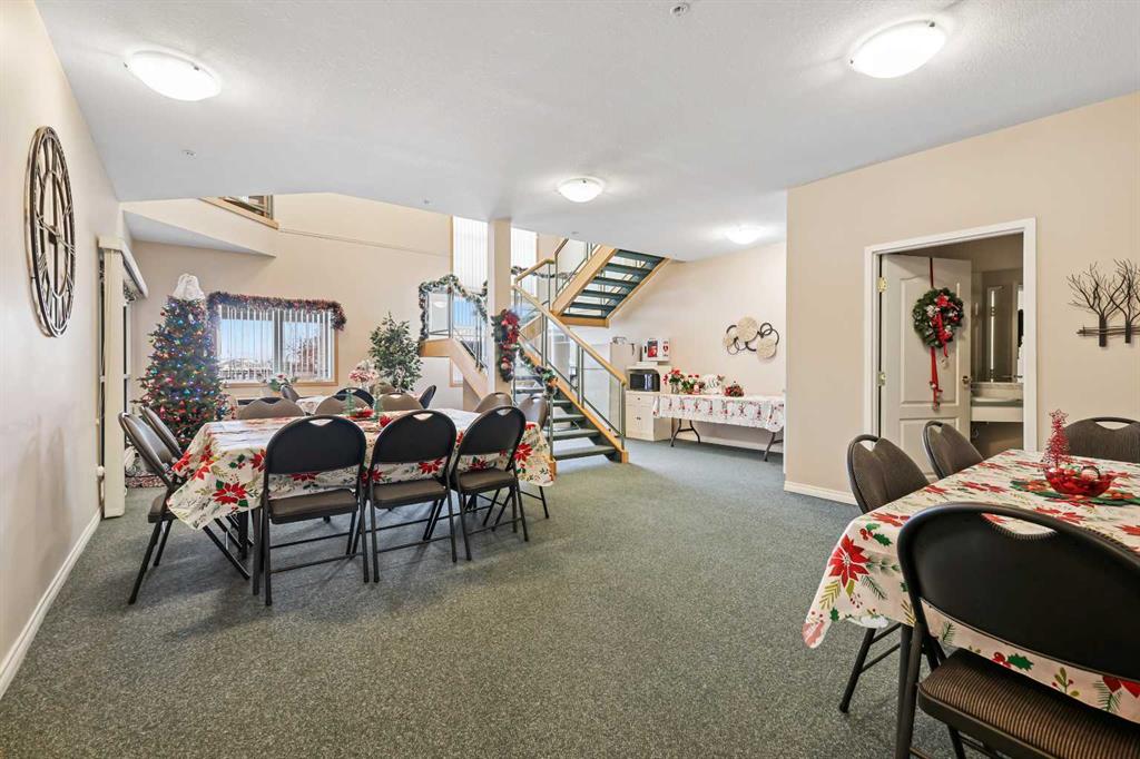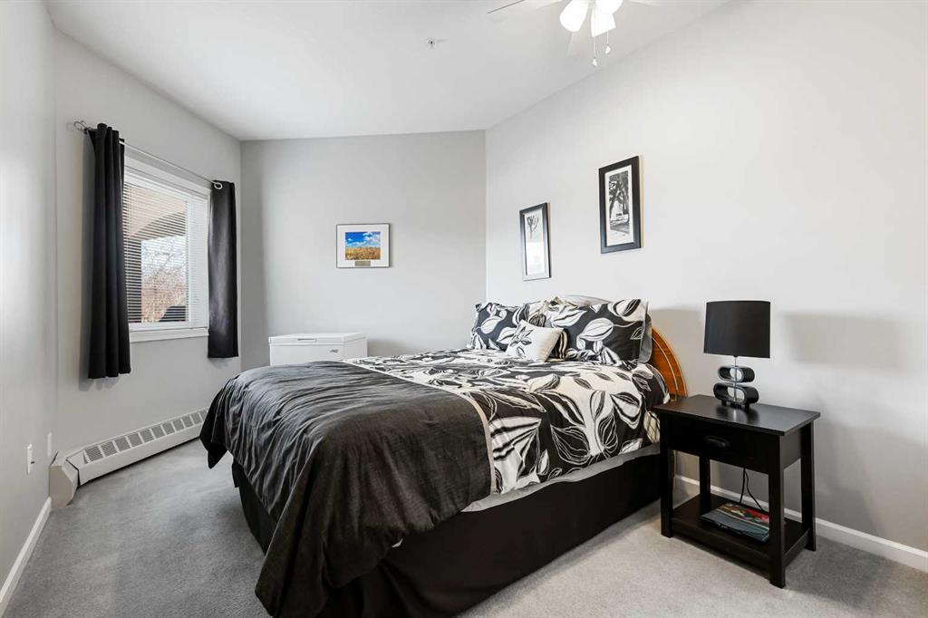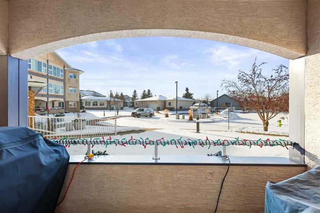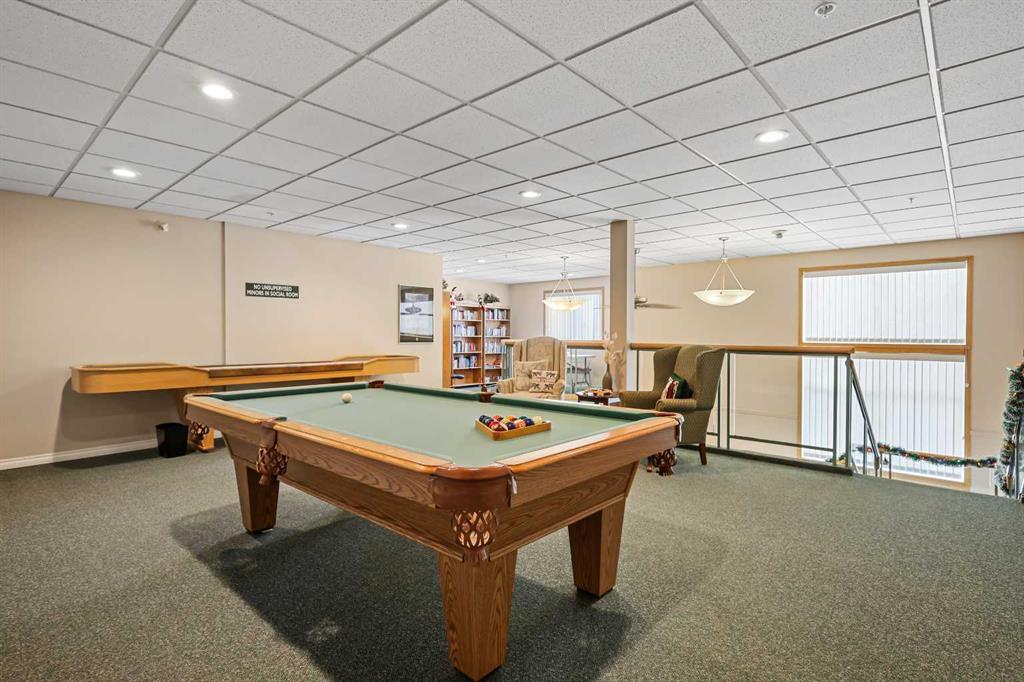 Welcome to Courtyard Adult Living, where comfort, convenience, and community come together. This immaculate and sun-filled main-floor condo offers 2 bedrooms plus a den, 2 full bathrooms and a thoughtfully designed open-concept floor plan that seamlessly connects the kitchen, dining, and living areas. The inviting living room features a corner gas fireplace and opens to a private deck with a pleasant view, perfect for relaxing. French doors lead to the den, making it an ideal space for a home office or hobby room. The spacious primary bedroom includes a walk-in closet and a full ensuite, a second bedroom perfect for visiting guest, while the unit also offers a generous laundry room with additional storage. The bright kitchen is complete with a breakfast bar, a spacious walk in pantry, and the home includes all appliances all new with in the las 5 years, and central air conditioning. The bonus with this home is the two titled underground heated parking stalls, and each unit comes with a storage locker for that extra needed storage space. Residents enjoy excellent building amenities, including an elevator, common sitting area, party/gathering room, library, games room with pool table and shuffleboard, and a lovely outdoor patio. Conveniently located steps from shopping, dining, and everyday amenities, this home delivers exceptional value and an easy lifestyle. Condo fees include numerous utilities. Perfect for downsizing, and seeking low-maintenance living in a welcoming community, this is truly a move-in-ready home where you can relax and enjoy life.