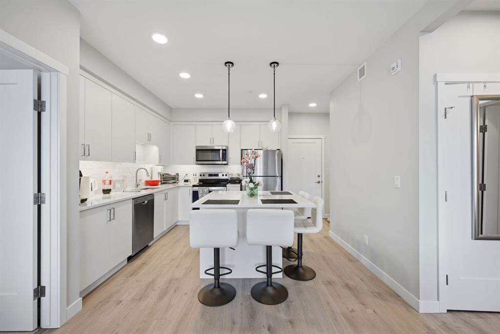 ATTENTION FIRST-TIME BUYERS & INVESTORS! Welcome to your next purchase, this 2 bedroom, 2 FULL bathroom condo is situated in the welcoming community of Shawnee Slopes. Connected by walkable paths this community includes shopping, schools, playgrounds, parks and is just short walk from the C-Train. This modern condo features stainless steel appliances, quartz countertops, tiled back-splash and a kitchen island with breakfast bar. Including in-unit laundry for added comfort. Featuring an ample sized living area, large windows to provide natural sunlight! A large primary bedroom with an accompanied walk-through closet and a 3pc ensuite, as well as a second bedroom and second full bathroom. A den to provide in unit storage, in addition to the titled storage unit. Forget having a cold car in winter with a titles and heated underground parking stall. A perfect home for a first-time buyers, young families or investors. Call you Realtor Today!