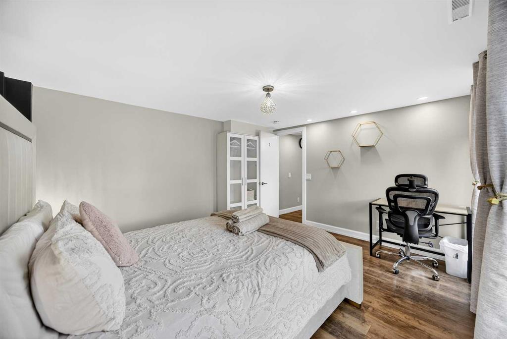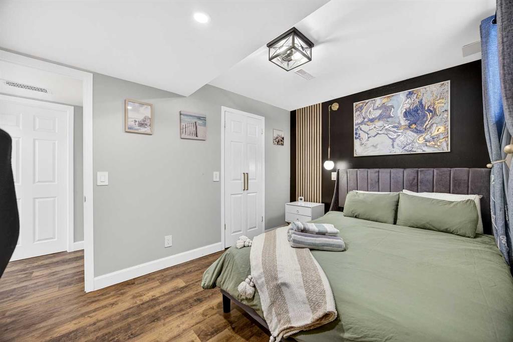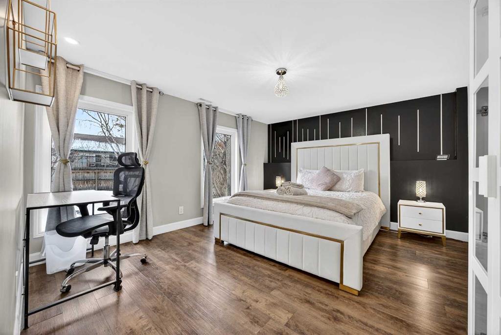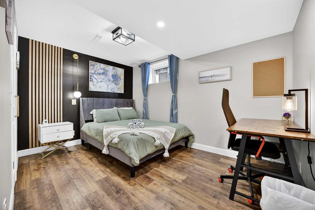 **JOIN US AT OUR OPEN HOUSES – SAT and SUN – March 7th & 8th – 1:00pm-4:00pm** Here is the one you have been waiting for! A stunning Layne Built walkout home in Meadowbrook Estates sitting on a quiet cul-de-sac with a sunny South facing lot. This 5 bedroom, 3.5 bathroom home has been completely updated and renovated throughout. Over 2600 sq ft of developed space including a SELF CONTAINED, FULLY LICENSED, 2-BEDROOM AIR-BNB GENERATING $35,000 PER YEAR on average over the last 3 years. This is an amazing opportunity to live up, rent down and cover your mortgage! Or a great mother-in-law space, nanny, or for extended families, the options are endless! As you enter the home you will be wowed by the soaring open signature Layne ceiling with beautiful detailed ornate plaster work adding timeless character and craftmanship to the space. Gleaming hardwood flooring leads you through the large open concept living room with tons of natural light shining through the NEW TRIPLE PANE windows. Chefs dream kitchen with warm ivory custom cabinetry, granite counters, tile backsplash, upgraded stainless steel appliances, and a large center island with an undermount sink and eat up bar. Open to the breakfast nook with big bright windows and garden door out to the large upper balcony with new surface boards and a natural gas hook-up. Adjoining cozy family room with tile-faced gas fireplace and renovated 2-piece powder with newer front-loading washer and dryer complete the main floor. Head up the brand-new carpet to the large master retreat with a bay window, renovated 4-piece ensuite bathroom, and walk-in closet. Good sized 2nd and 3rd bedrooms with durable vinyl plank flooring and their own adjoining renovated full bathroom. Open the soundproofed basement door that leads you to a beautifully decorated AirBnB basement with spacious living room with stone faced fireplace, dining area, and fully equipped kitchenette with butcher block counters. 2 large bedrooms and a spa-like bathroom with floor to ceiling tile and walk-in shower. This gorgeous space walks out onto a covered patio with relaxing hot tub and patio area. Your guests will never want to leave! All this on a huge lot with big mature trees giving you a very private tranquil backyard space. This home has been extensively updated throughout including new triple pane windows (2023), R45 attic insulation (2022), furnace and A/C (2019), roof (2013) just to name a few major ones. All located in the desirable neighborhood of Meadowbrook with a tight-knit community atmosphere. Families will appreciate the proximity to highly rated schools and being surrounded by parks, playgrounds, shopping, and East Lake Regional Park. This home is a must see!