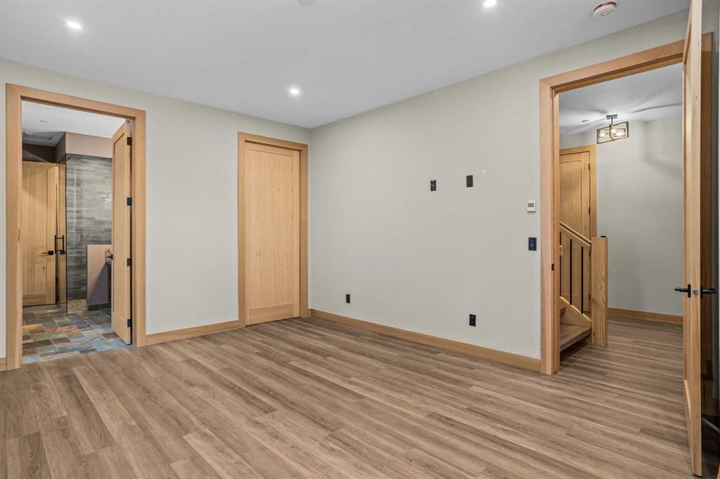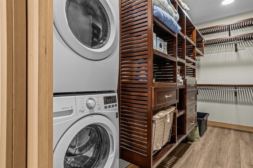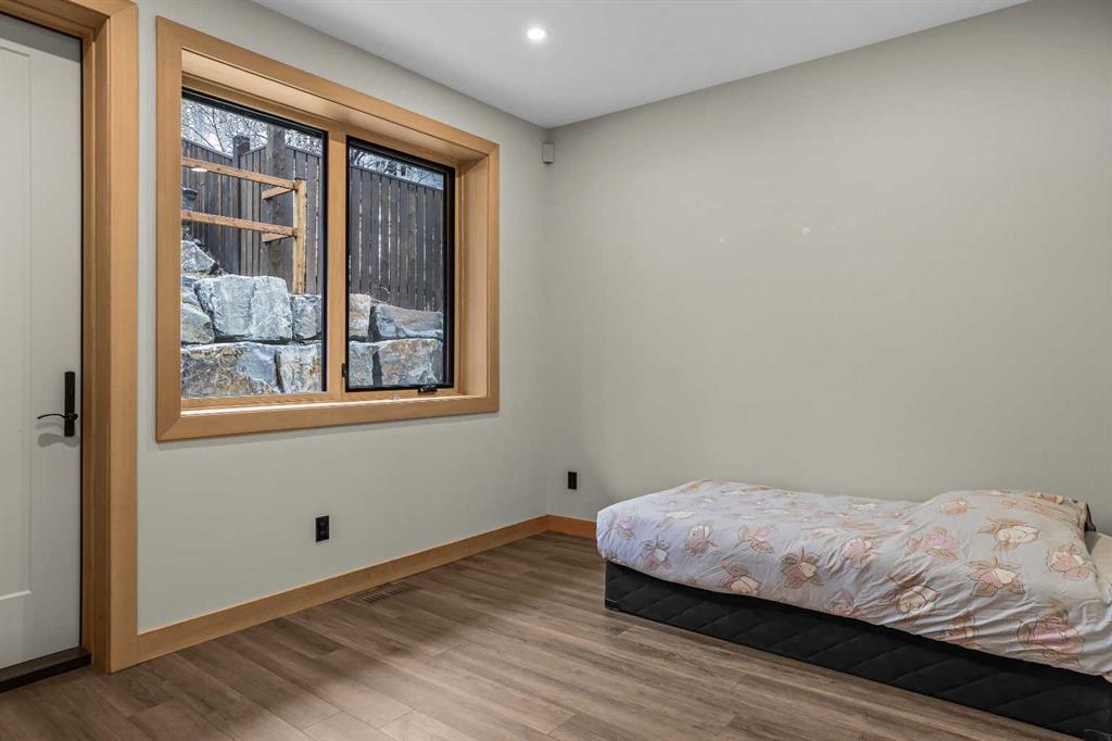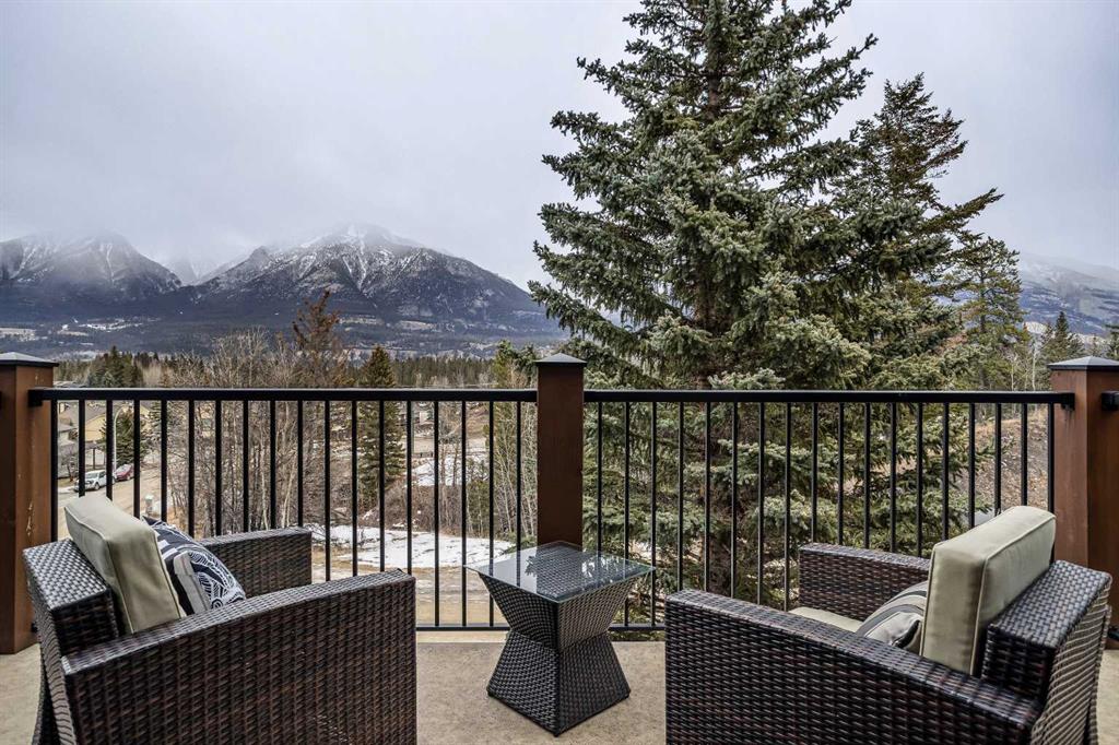 The backyard is truly exceptional fully fenced and thoughtfully terraced with multiple lounging areas, a covered hot tub retreat, fire pit, and a private viewing platform perched above the valley an ideal vantage point to take in Canmore’s landscape.