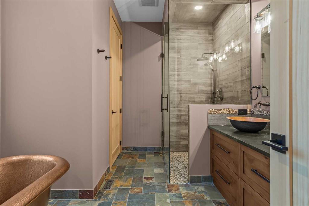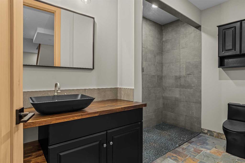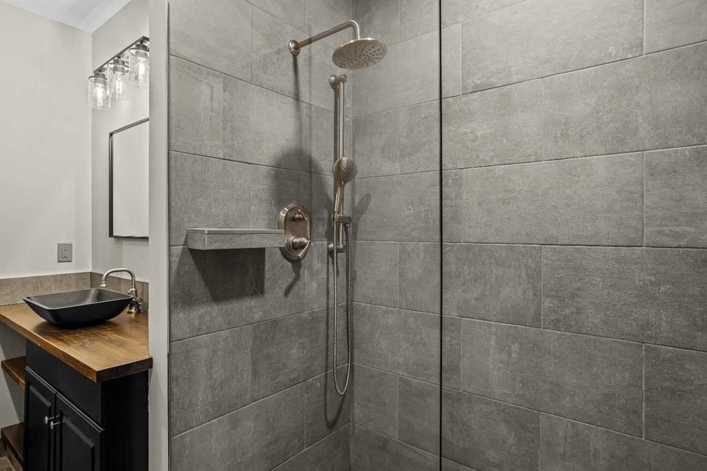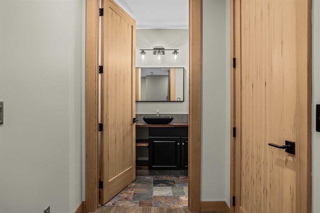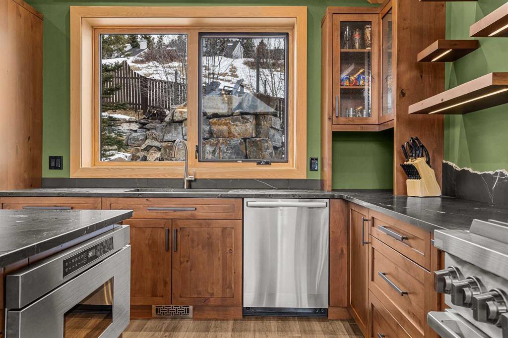 The backyard is truly exceptional fully fenced and thoughtfully terraced with multiple lounging areas, a covered hot tub retreat, fire pit, and a private viewing platform perched above the valley an ideal vantage point to take in Canmore’s landscape.