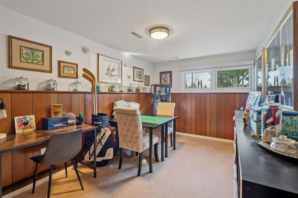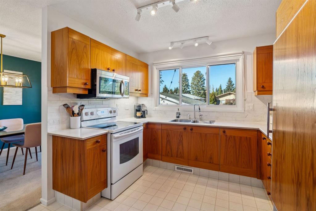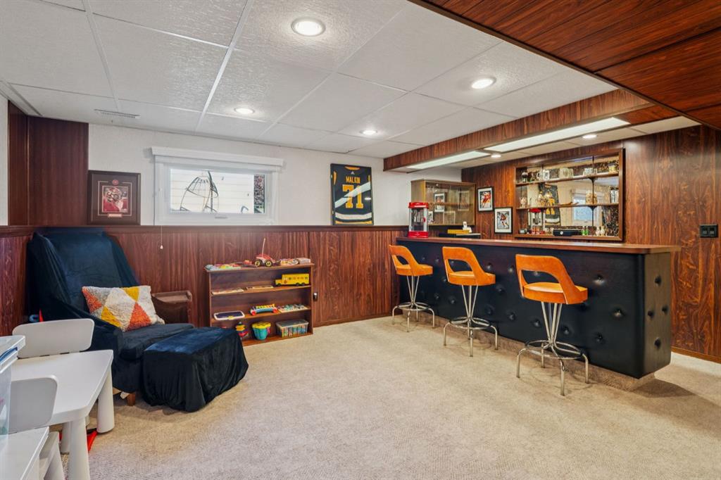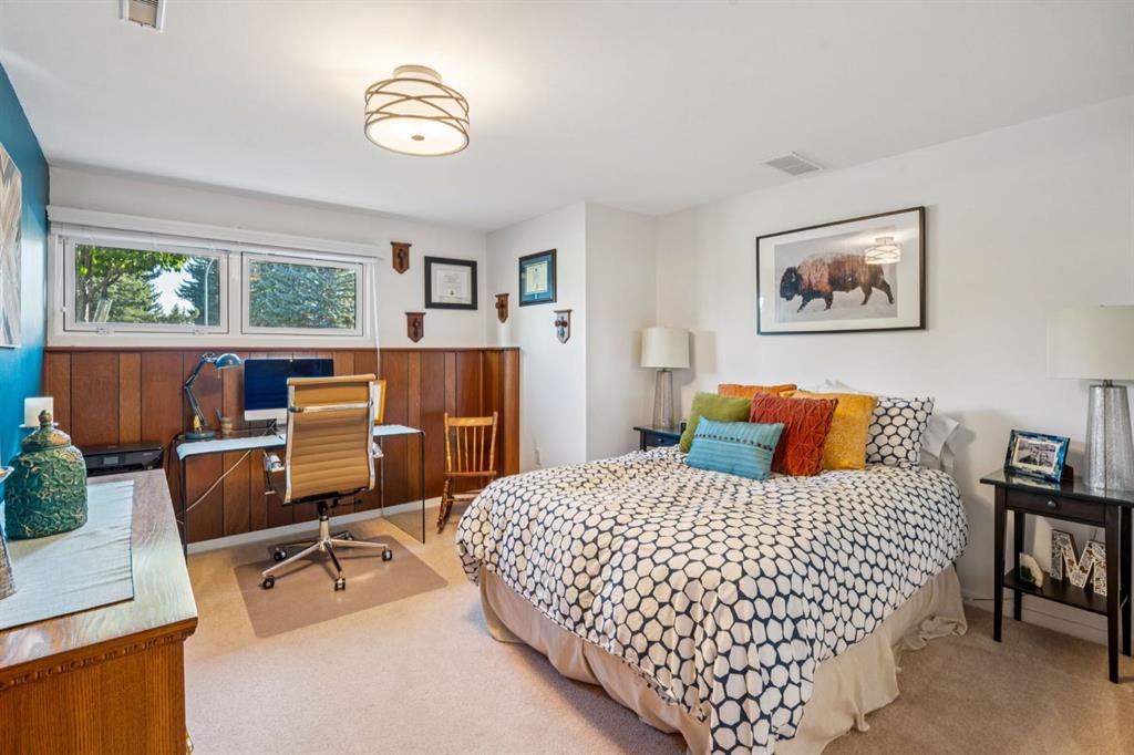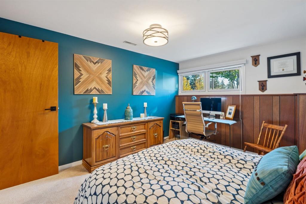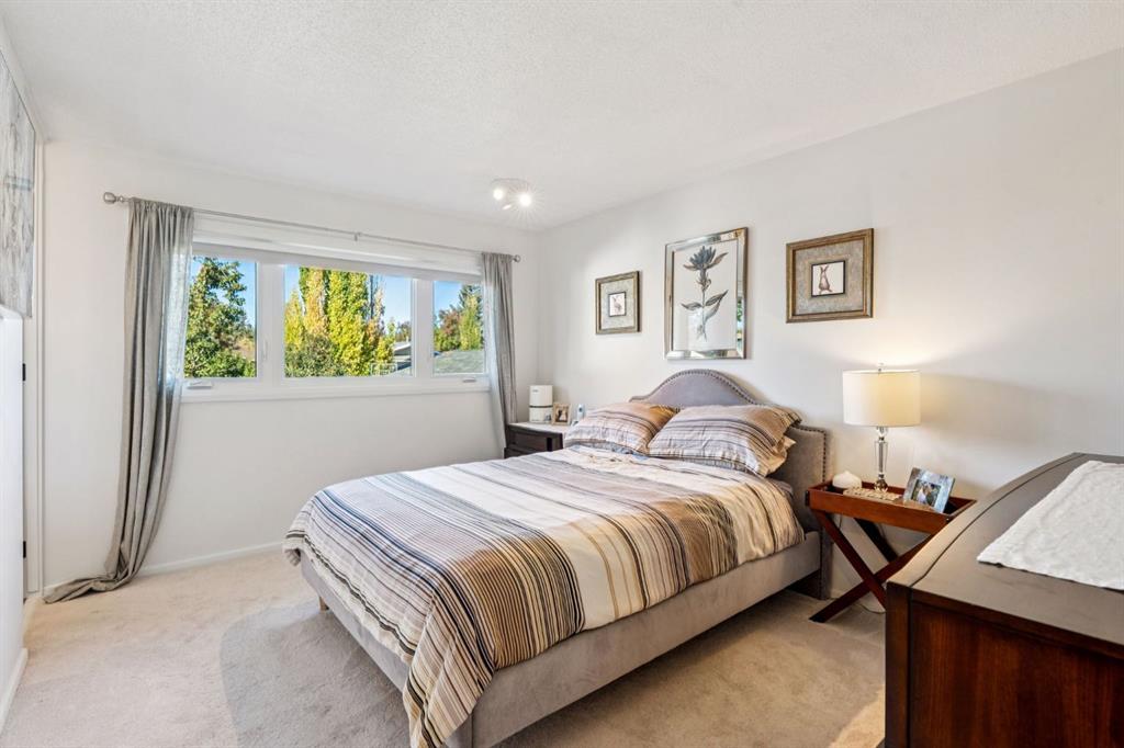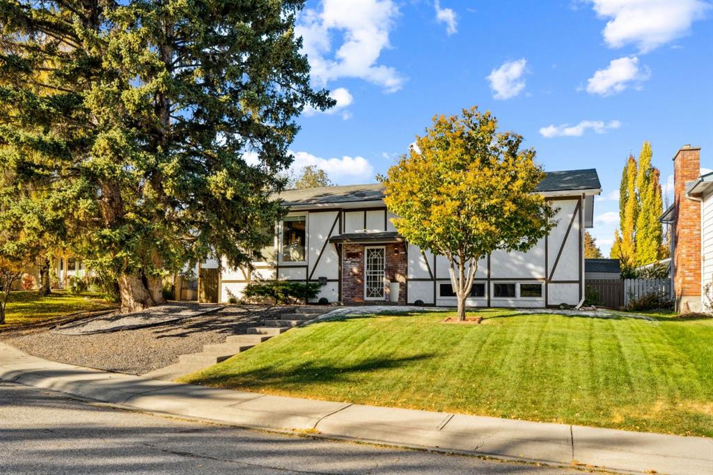 Highly desirable Tudor style bilevel home in a fantastic cul-de-sac location with island green space in Canyon Meadows. Welcome to this charming updated home featuring 4 bedrooms, 2.5 bathrooms, gorgeous West back yard, RV parking, double garage, mature landscape on an large 6899 square foot lot. This home has had all the important upgrades completed in the last 10 years. Air Conditioning (2023), Electrical panel upgraded & relocated, East gate for RV parking, North fence, sod and gravel (2022), Furnace, back door steps/landing, aggregate poured patio & walkways front & back, garage overhead door, 3 toilets and West fence (2021), 13 new windows with basement egress except one (2015-2020), Hot Water tank (2019), paint (2018) and prior owners replaced roof shingles on the house & garage, the copper wiring, the water pipes, carpet & trim (2008- 2015). The main level features a bright kitchen with teak cabinets, Corian counters, built in sub zero fridge, adjacent formal dining room, main level laundry, two bedrooms and two full bathrooms. Two of the bedrooms are currently one large bedroom but can be converted back to two bedrooms easily – making it a three bedrooms on the main level. The basement offers a retro style retreat with sit down bar, recreation room with electric fireplace, many built ins for storage, two more bedrooms, a den with a small window, a storage room which was previously the laundry room and a separate utility/furnace room with newer upgraded electrical panel that can accommodate an EV charger in the garage. A gorgeous back yard oasis with mature trees, shrubs and large aggregate patio area that awaits your outdoor enjoyment. A solid meticulously maintained home in a quiet cul-de-sac location with greenspace view, walking distance to elementary schools, junior & high school close by, a strip mall, bus stop, LRT station and major routes for easy commute around the City. This idyllic home awaits a new family offering peace, relaxation, functional spaces, recreation with a connection to nature in Fish Creek park in Canyon Meadows – one of the most desirable neighbourhoods in Calgary. Don’t miss this fantastic opportunity!
