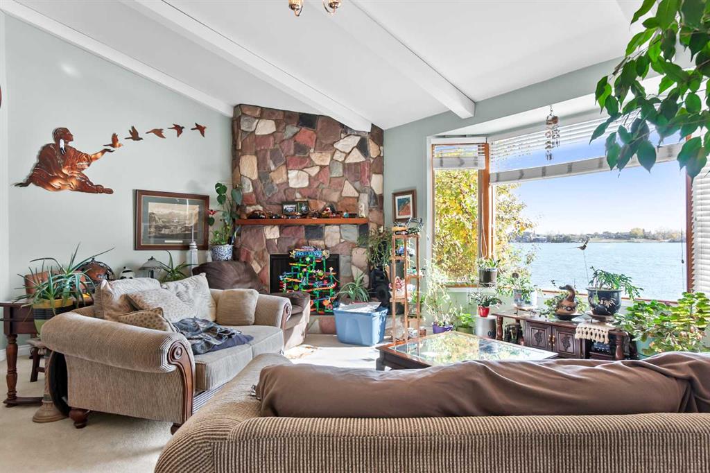 Take a stroll down West Chestermere Drive, this location is not to be missed! Nestled at the very end of this scenic cul-de-sac, next to a reserve, on an extra large private lot, is this wonderful walk-out bungalow. Built in 1976, this home has ample character and all the potential possible. With three bedrooms upstairs and two bedrooms down, here is all the room you need. Enjoy the open concept upper floor plan, big bright windows with natural lighting and an incredible view of the lake from your dinning room table. Four bathrooms, including a deep soaker tub. Two wood burning fireplaces in beautiful brick features. A large family room and spacious rec room, with a huge pool table included. Outside on your private deck is a working hot tub. The 32’x16′ vinyl sided Boat House and dock and boat lift are only a few of the many perks this property has to offer! Underground sprinkler system, heated 30×30 garage with front access, huge concrete parking pad, a vinyl maintenance free retaining wall, an additional basement kitchen. Everything you could possibly need, right here in one place, on the lake.