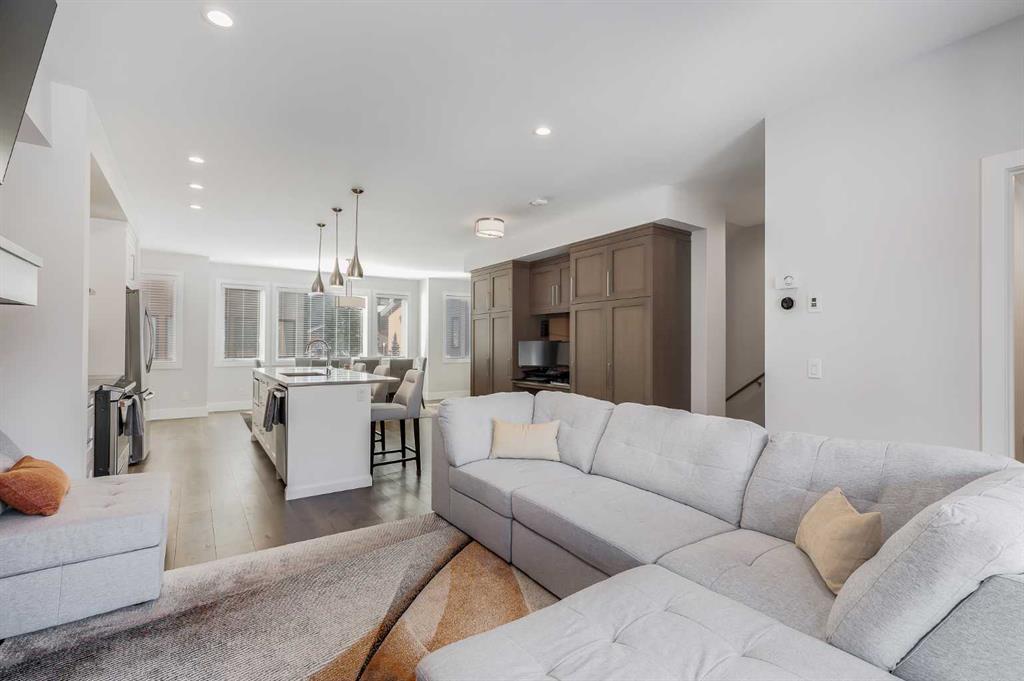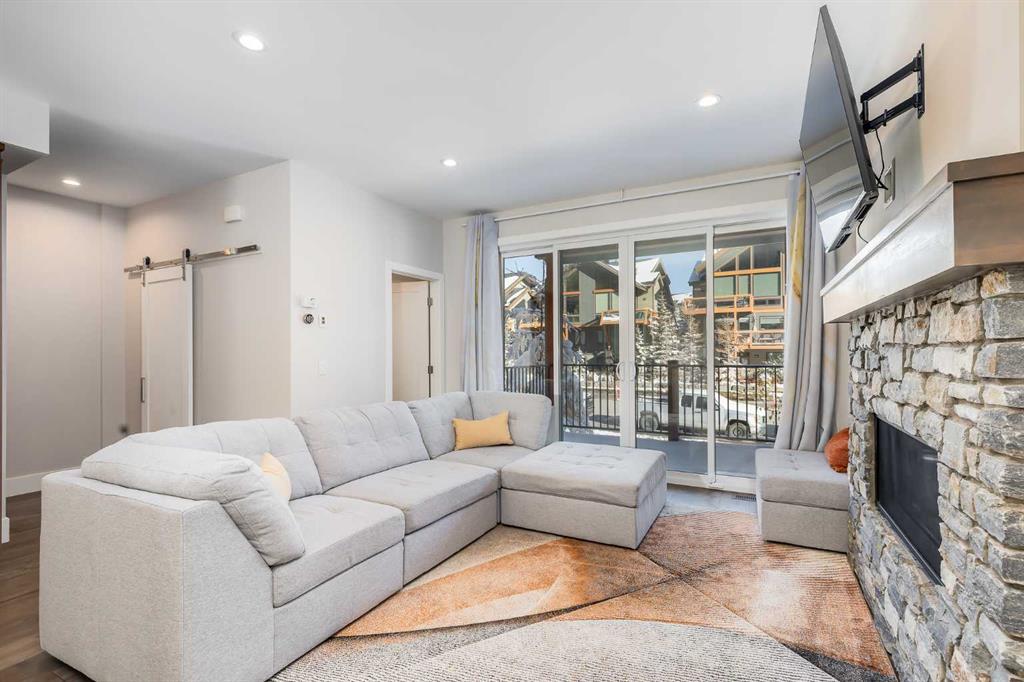 Beautifully maintained three-bedroom townhouse in Stewart Creek featuring over 1,700 sq ft of stylish living space and a double attached garage. Located in sought-after Three Sisters Mountain Village, this bright and inviting home showcases an open-concept main floor with a chef’s kitchen offering quartz countertops, modern cabinetry, stainless steel appliances, and recent upgrades including air conditioning, a gas range, and a new refrigerator. The spacious dining area is perfect for entertaining and flows into a comfortable living room with a cozy fireplace and access to a deck boasting breathtaking mountain views. Upstairs you’ll find a serene primary bedroom complete with a walk-in closet and ensuite bath, along with two additional bedrooms and another full bathroom. With engineered hardwood floors throughout, abundant natural light, and excellent storage options including a large gear room, this home blends luxury and practicality. The upcoming Gateway at Three Sisters commercial development will soon add nearby shops, grocery stores, and restaurants, enhancing the convenience of this exceptional mountain property.