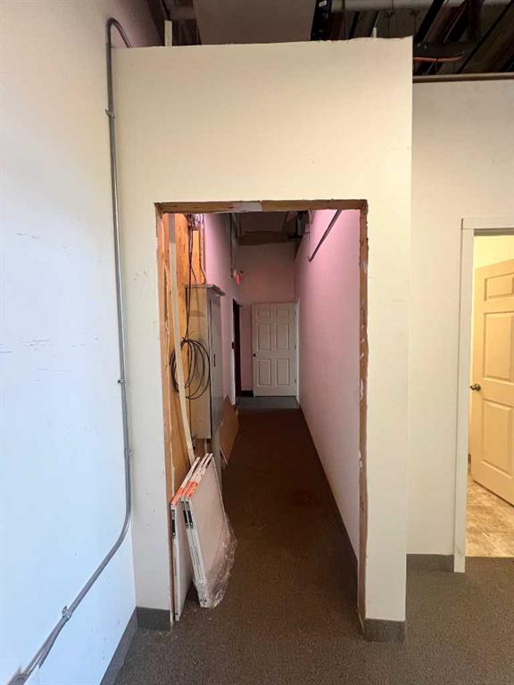 Don’t miss this fantastic opportunity to lease this nearly 1,480 sq ft retail condo bay in a prime downtown Crossfield location—just 20 minutes from Calgary. This versatile property offers exceptional potential with two separate, fully finished spaces, each featuring its own 2-piece bathroom for added convenience. Both units provide a long, rectangular layout with bathrooms located at the rear, complete with drywall finishing and carpeted flooring. The complex is anchored by well-established businesses including a liquor store, Pharmacy, Dental, pet Store etc. Ensuring strong visibility and steady foot traffic. A great spot to set up your new or existing business.