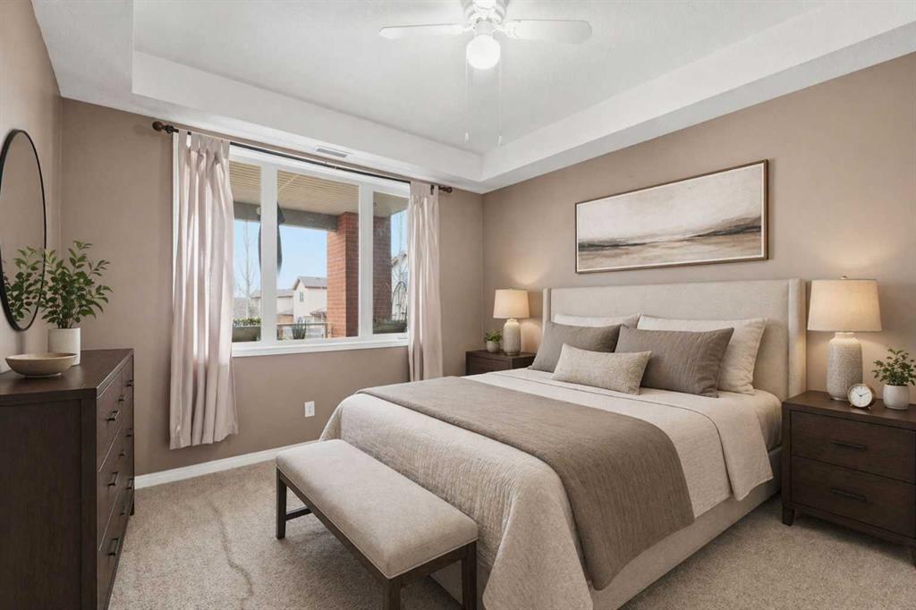 Welcome to the Sierras of Evergreen – a great 55+ development that is in great demand! The list of amenities includes a pool, hot tub, fitness centre, banquet room, meeting room, craft room, theatre, games room, workshop, wine-making room and car wash.! This 993 square foot 2 bedroom 2 bathroom home features a bright kitchen with lots of cabinets and counter space and a spacious iving room with laminate flooring. The primary bedroom has a 4 piece ensuite and a large walk-in closet. The second bedroom has french doors and is an ideal office/den area. This unit comes with a titled underground parking stall with a storage room at the end of the stall. Located across the street from Sobey’s, Tim Hortons and other fine shoppes. Come tak a look.