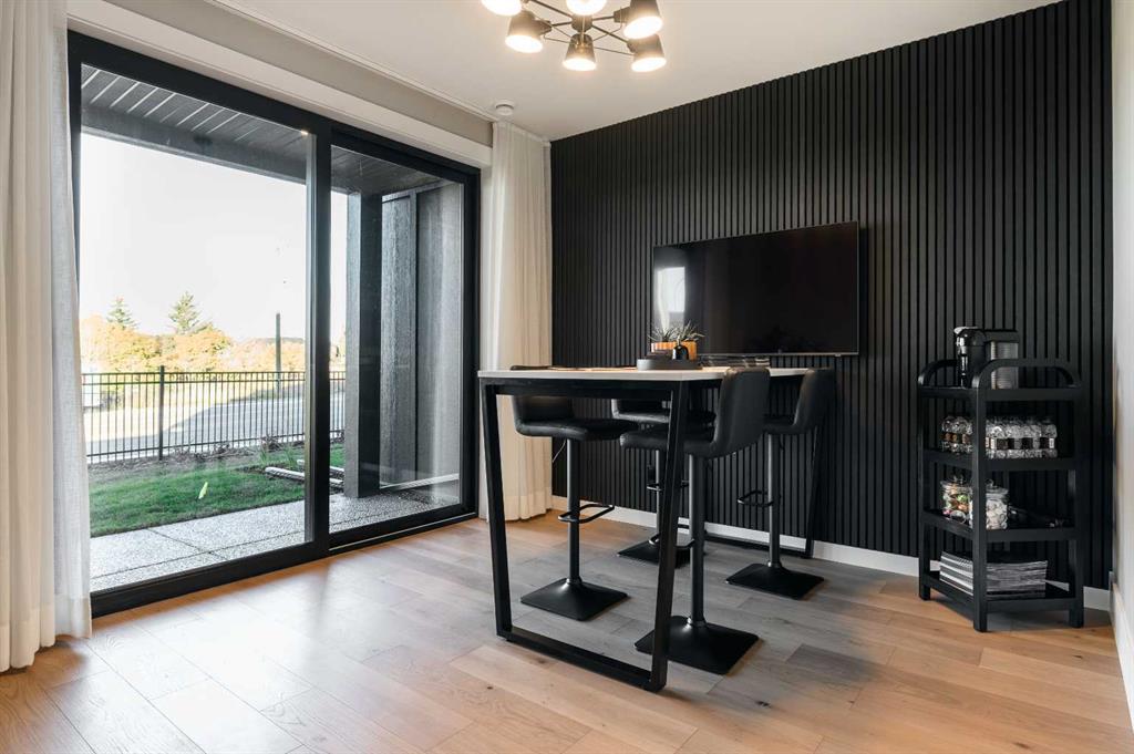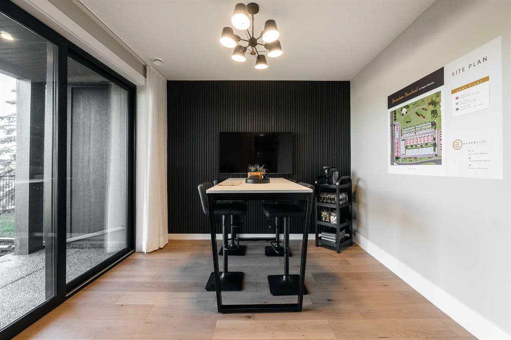 Nestled in the heart of Seventeen Hundred at Aspen Estates, this luxurious townhome with The Dalton floorplan (a design finalist with the 2025 BILD Calgary Awards) has been carefully crafted by RareBuilt Homes & offers over 2,700 sq ft of refined living space, complete with 3 bedrooms, amazing mountain views and exceptional design throughout. The airy main level with lofty 9’ ceilings, showcases engineered hardwood flooring, and expansive high end European triple glazed tilt & turn windows that flood the home with natural light. A spacious great room centers around a striking feature fireplace and opens to a large balcony with a louvered roof—perfect for year round enjoyment. A dedicated office space provides an ideal setting for work from home days. The beautifully appointed kitchen features quartz countertops, a generous island with eating bar, full height custom cabinetry, a walk in pantry, and a premium appliance package. The dining area comfortably accommodates gatherings with family and friends. A stylish 2 piece powder room completes the main level. Upstairs, the second level hosts three well proportioned bedrooms, a 4 piece bath, and convenient laundry facilities. The serene primary retreat with soaring vaulted ceiling includes a spacious walk in closet and a private 5 piece ensuite with in floor heat, dual sinks, a freestanding soaker tub, and a separate shower. The lower level offers impressive versatility with a large flex room and direct access to a walk out patio—ideal for a media room, fitness area, or family space. This level also includes a mudroom connecting to the fully finished & painted oversized double attached garage that’s EV charger ready. Additional highlights include an elevator serving all three levels, central air conditioning, six solar panels, and concrete demising walls for enhanced privacy and noise reduction. Set within an exclusive complex spanning nearly 9 acres—5.5 of which are dedicated to green space—this residence delivers an unparalleled standard of comfort, quality, and sophisticated living.