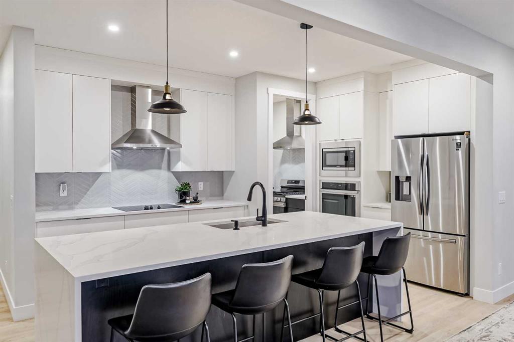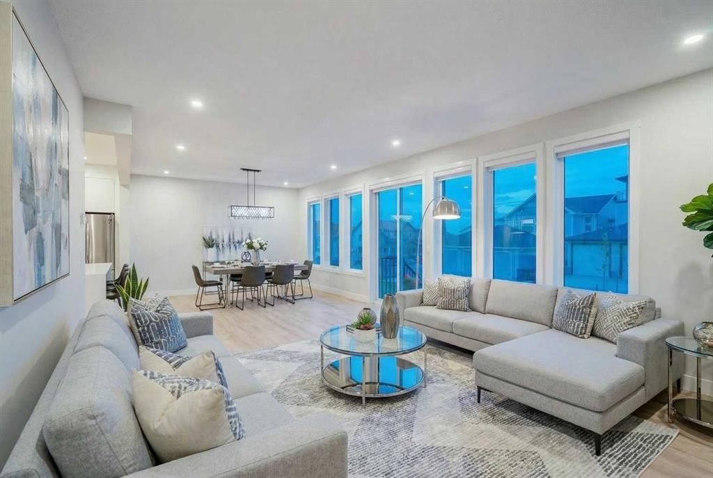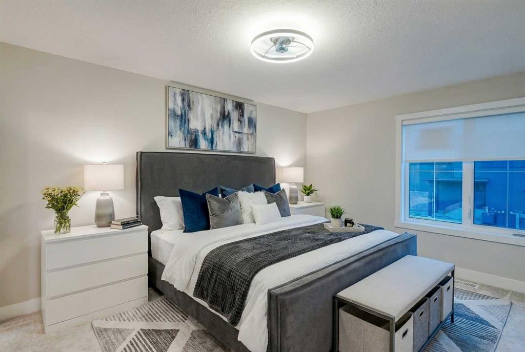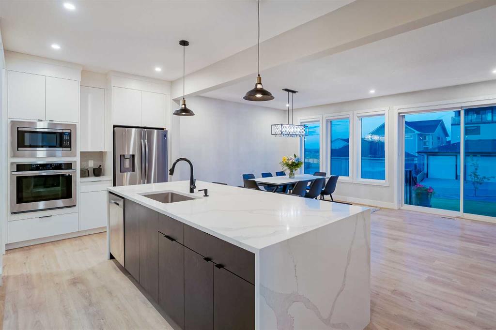 Welcome to this beautifully crafted 2022-built home in the award-winning community of Harmony, offering over 4,000 sqft of thoughtfully designed living space with luxurious finishes throughout. From the moment you walk in, you’ll notice the attention to detail—large windows on the main floor flood the home with natural light, highlighting the elegant design of the spacious living room and dining area, perfect for family gatherings and entertaining. The main floor also features a dedicated office, ideal for working from home in peace and comfort. The heart of the home is a showstopper: a stunning kitchen with a sleek stovetop and a private spice kitchen equipped with a gas range, giving you the flexibility to cook and entertain with ease. Upstairs, you’ll find a bright and open bonus room, perfect for a second lounge or kids’ play area. The primary bedroom is a true retreat with custom-fitted closets and a spa-inspired ensuite featuring double vanities and high-end finishes. The fully developed basement offers two spacious bedrooms and has been roughed-in with all plumbing extensions in place for a future kitchen, making it an excellent option for extended family. The home also includes central air conditioning to keep you comfortable all year round. Situated in Harmony, you’ll enjoy access to the lake, beach, community fire pits, beach volleyball court, skating rink, scenic pathways, parks, and an unmatched lifestyle just minutes from the city and steps from the mountains. This is more than just a home—it’s a lifestyle.