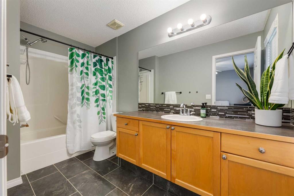 Negotiable Possession! Can be quick! Dual Master Suites, one with a full 4-piece bath and one with a 3-piece bath. FULLY FINISHED BASEMENT has a beautiful rec room/flex room. Utility room with good storage space and lots of storage under the stairs. Upstairs you will enjoy the bright Living Room with office space. Walk out to porch and stairs, welcoming your guests if you choose to use this entry to your spacious home. Walk up to lovely Kitchen, dining (lovely deck for your BBQ’s and quiet relaxation) 2-piece bath/laundry. Upstairs will again surprise you with two bedrooms, each having their own bathroom ensuites (one a 4-piece bath and the other a 3-piece bath) and two walk-in closets. Front attached garage and a driveway with room to park a second vehicle. Amazing location across from morning coffee and other amenities as well as close to Calgary’s ring road, transportation and access to everything including Walking paths, Fish Creek, schools and so much more! It’s so easy to live here! This is a beauty! Call and book your viewing now! You will love this home!