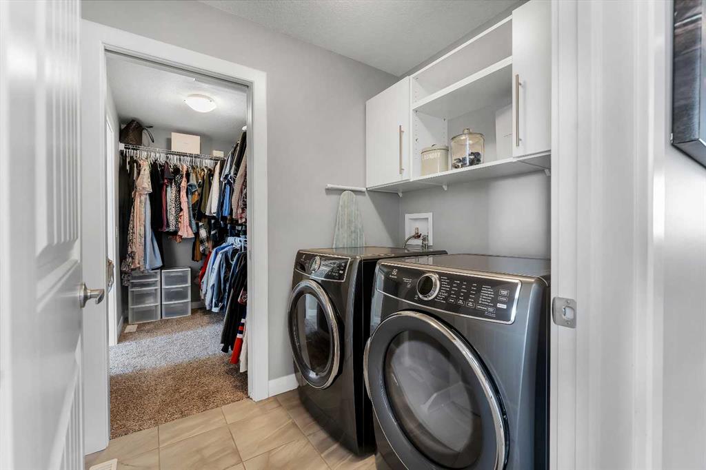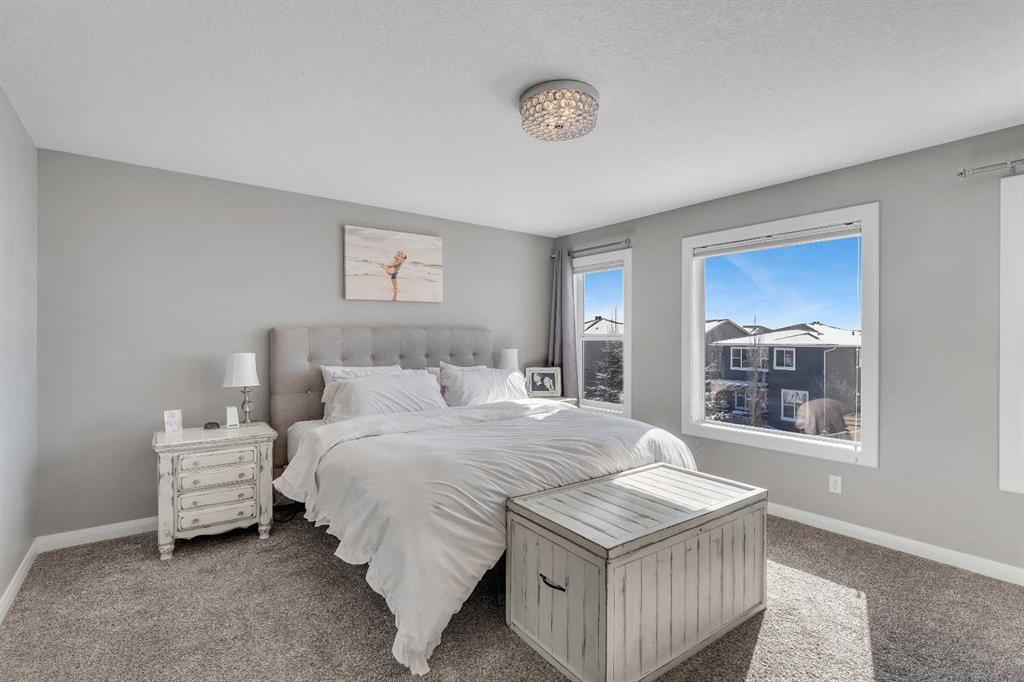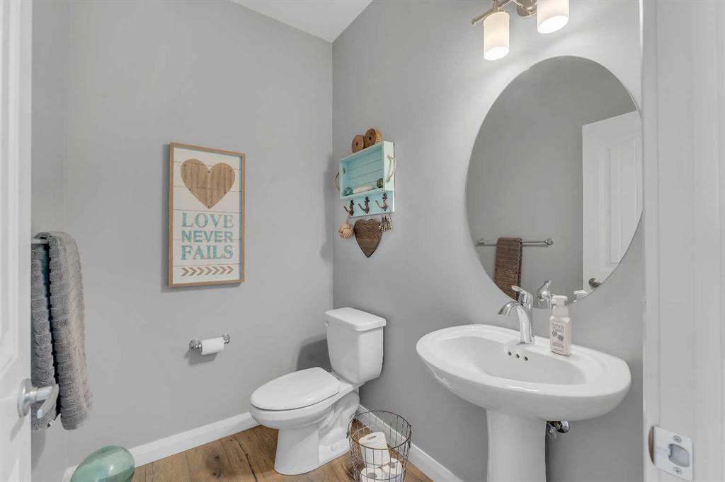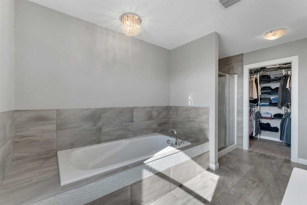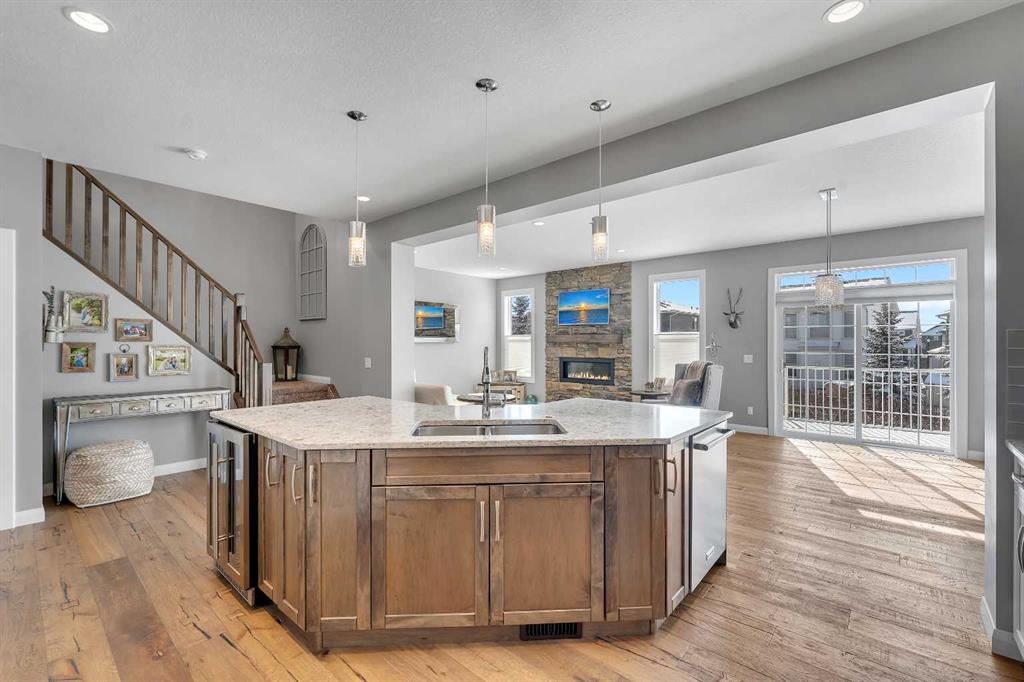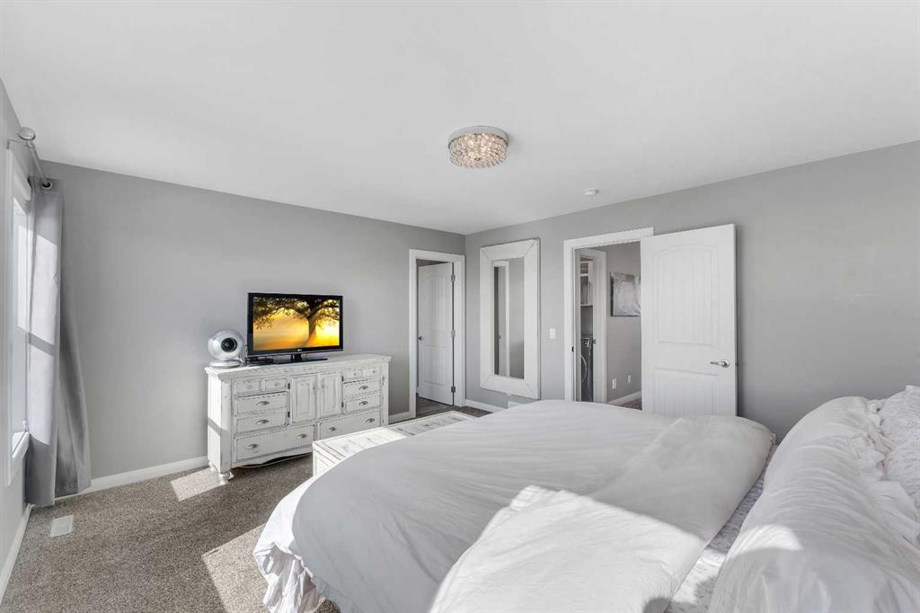 Welcome Home! This 2 story residence has so much to offer and features: 3,400+sq ft fully finished space w/ 5 bed, 3.5 bath + bonus | backing walking path + steps to rubber floor park | upgraded interior specifications | massive rear deck + landscaped | and so much more! All located in the developed Airdrie community ‘Ravenswood’ – with schools, amenities, access to major highways, green spaces & more making it perfect for growing families. Stepping inside you’ll immediately notice the pride of ownership in this home. With the gleaming hardwood floors leading you throughout the main floor which offers living room, dining, large kitchen, walk thru pantry, mud room w/ built ins, and half bath. The kitchen features: beautiful white cabinets, granite countertops, large island with eating bar, plenty of storage space, SS appliances, walk thru pantry to mud room (perfect for bringing groceries home), cabinet to ceiling and more. Living room features a stunning stone fireplace, that extends to the ceiling giving the home a grand look. The main floor interior is sunlit with large windows, including sliding glass patio doors. Along with the high ceilings, this leaves the main floor feeling bright, airy and spacious – perfect for entertaining or the day to day life with the kids! Head upstairs to land in the large bonus room. Along with that, there are FOUR bedrooms upstairs! With the master being a great size with views of the green area behind the home being something that makes day to day living here that much more special. The master ensuite has everything you need and features: double vanity, toilet, stand alone tub, walk in shower. Along with that, you also have a large walk thru closet that leads to the upper laundry room – a well thought out layout by the builder! The basement is fully finished and features living space, bedroom, full bath, utility room and storage space. There is a concrete walkway on the side of home leading to poured concrete pad in the backyard. Along with that, the large deck. Most importantly, with a park the kids can play at only steps away, along with a walking path directly behind the home, this home truly checks all the boxes for what you can get in a home like this. Book your viewing today, before its gone!