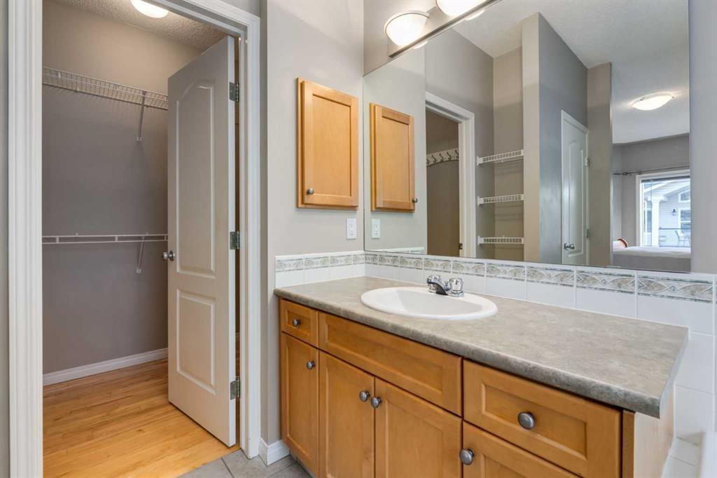 OPEN HOUSE Tuesday OCTOBER 28 from 3 to 5 PM. Looking for LOW MAINTENANCE living close to amenities in NW Calgary? Practical and appealing, this townhome is ideal for first time home buyers or those wanting to downsize. With 2 bedrooms and 2 baths on ONE LEVEL in ROCKY RIDGE BROWNSTONES, this home is extremely bright and spacious. The thoughtful layout with 1329 square feet, plus 12 foot vaulted ceilings in the living and dining areas, opens onto a huge balcony, providing abundant sunlight with south exposure. The living room includes a stone faced, gas fireplace with mantle, built-in shelf space and a separate work desk. The adjacent dining room and kitchen with eating bar and pantry create functional entertaining and daily living spaces. The separated bedrooms are functional, private sleeping areas. The primary bedroom offers a ensuite with corner soaker tub, separate shower and walk-in closet. The second bedroom is located next to the four piece bath and ensuite laundry. Light coloured maple hardwood, tile flooring and neutral paint colour create a decor which is adaptable to modern or traditional styling. Amenities are abundant with access to the Rocky Ridge Ranch Homeowners Association facilities ($25 per month), close proximity to LRT station and Stoney & Crowchild Trails, plus extensive retail shopping and services minutes away. The monthly condo fee of $389 includes professional management, exterior maintenance, snow removal and landscaping to support a carefree lifestyle. An attached single garage, plus front driveway, provides parking for two vehicles. This nicely presented, well located townhome is ready for November occupancy.