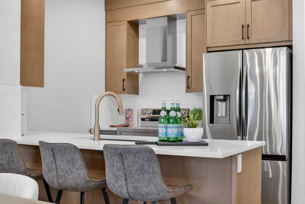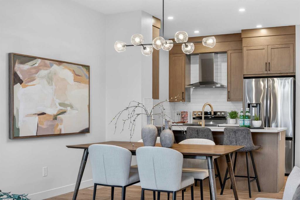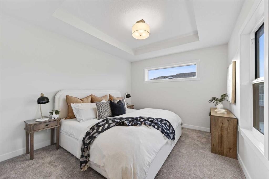 Welcome to 1051 Bayview Crescent, an END UNIT street-side luxury townhome with NO CONDO FEES and a SIDE ENTRANCE! The Jasper townhome features an attached double garage, a rooftop patio, and low-maintenance living. The tastefully designed home offers over 1400 sq ft. of above-grade living space plus an unfinished basement with 9′ ceilings, ready for your design ideas. On the main floor, you will find soaring ceilings in the open-concept living space and large windows that let natural light flow through. The chef-inspired kitchen offers beautiful cabinetry and stone countertops and is well-equipped with stainless steel appliances. The kitchen is open to the dining and living room, perfect for entertaining family and friends. Complimenting the main floor is a convenient half bath, storage and entry from the attached 19.3′ x 21.7′ garage. Venturing upstairs, you will find a spacious primary retreat with a spa-like ensuite, a spacious shower, and a generous walk-in closet. Two additional bedrooms, a full bath, a 4-piece bath and laundry complete the upper level. Outside, enjoy spending time on your upper rooftop patio, which is situated above the garage. Bayview is a beautiful community with parks, benches and pathways that meander throughout the community and along the canals. Kids and adults alike will enjoy the outdoor basketball nets, gym, amphitheatre, and tennis courts, which convert into a skating rink in the winter. Come and see all the amenities the community offers for yourself! *RMS has been applied to the construction drawings provided by the builder. Taxes to be assessed.
