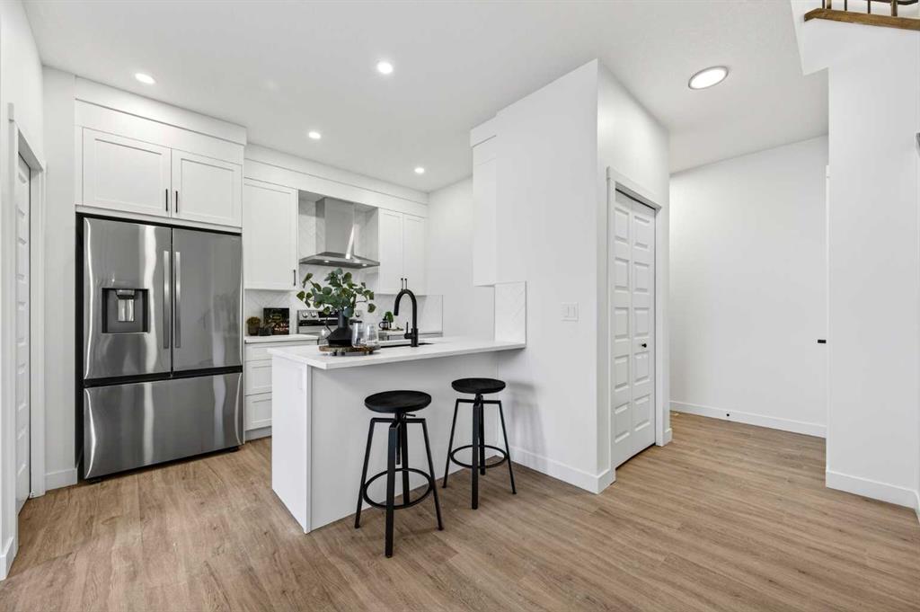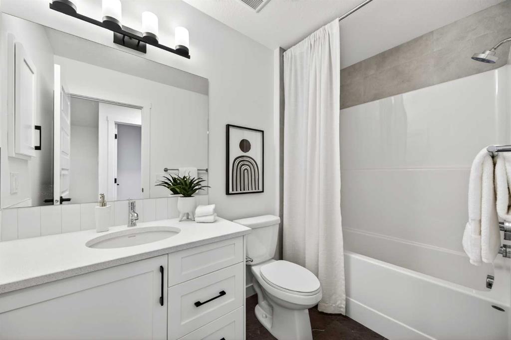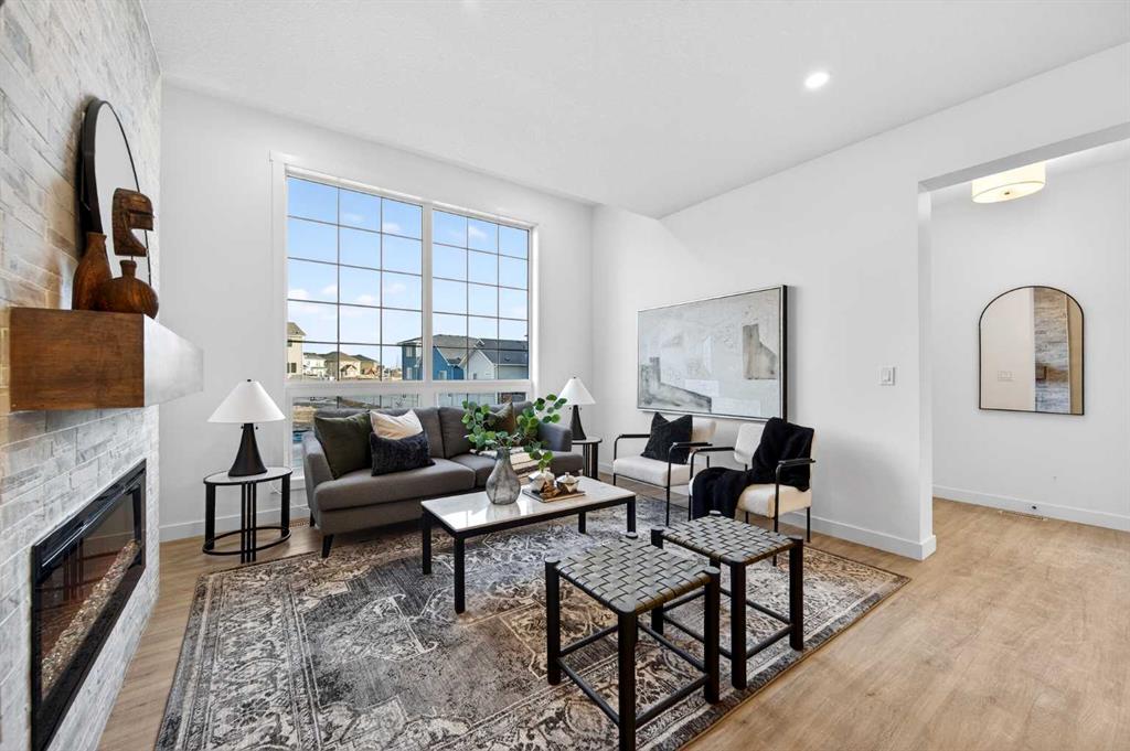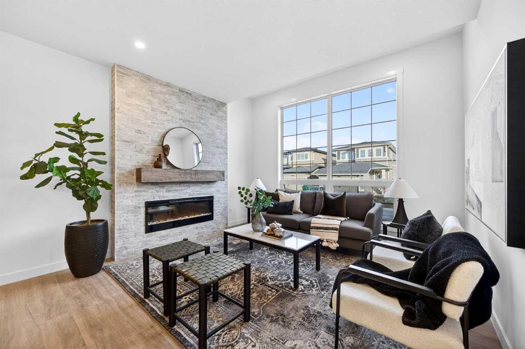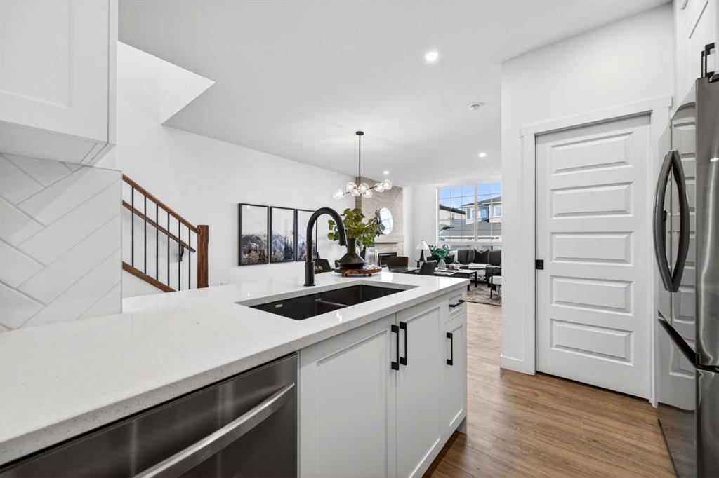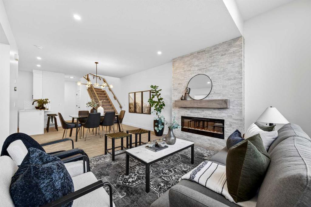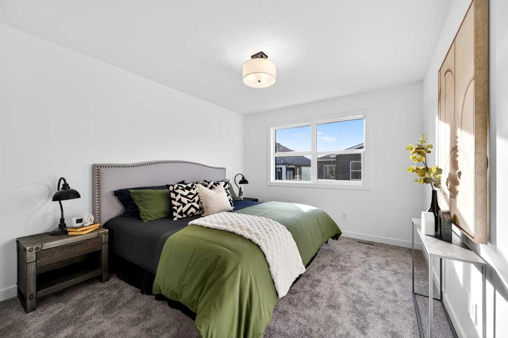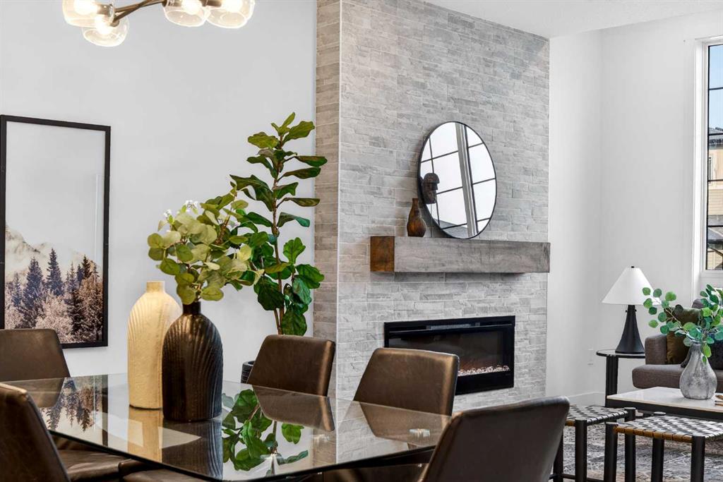 Welcome to 1055 Bayview Crescent, a beautifully designed street-side luxury townhome with NO CONDO FEES! This interior Jasper townhome features an attached double garage, a rooftop patio, and low-maintenance living. The tastefully designed home offers over 1400 sq ft. of above-grade living space plus an unfinished basement with 9′ ceilings, ready for your design ideas. On the main floor, you will find soaring ceilings in the open-concept living space and large windows that let natural light flow through. The chef-inspired kitchen offers beautiful cabinetry and stone countertops and is well-equipped with stainless steel appliances. The kitchen is open to the dining and living room, perfect for entertaining family and friends. Complimenting the main floor is a convenient half bath, storage and entry from the attached garage. Venturing upstairs, you will find a spacious primary retreat with a spa-like ensuite, a spacious shower, and a generous walk-in closet. Two additional bedrooms, a full bath, a 4-piece bath and laundry complete the upper level. Outside, enjoy time on your upper south-facing rooftop patio, which is situated above the garage. Bayview is a beautiful community with parks, benches and pathways that meander throughout the community and along the canals. Kids and adults alike will enjoy the outdoor basketball nets, gym, amphitheatre, and tennis courts, which convert into a skating rink in the winter. Come and see all the amenities the community offers for yourself! *RMS has been applied to the construction drawings provided by the builder. Taxes to be assessed.