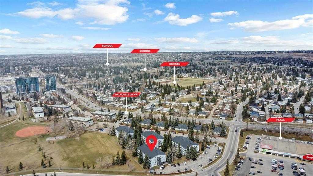 Fantastic location in the heart of Dalhousie! This well-maintained 1-bedroom, 1-bath condo offers open-concept living with updated vinyl flooring, a spacious living area, functional kitchen with dining nook, and a versatile in-suite storage room/den. Includes an assigned parking stall with plug-in, plus ample visitor and off-street parking. The location is truly walkable—just steps to CO-OP, Canadian Tire, a variety of restaurants, shopping, parks, and playgrounds, with the University of Calgary close by. Transit is effortless with both the C-Train and bus routes right at your doorstep, including direct access to downtown and nearby hospitals. Situated in a well-managed complex with coin-operated laundry and pet-friendly policies (1 dog or cat allowed with board approval), this unit is ideal for first-time buyers or investors seeking a prime rental opportunity. Call your fav Realtor and book your showing today!