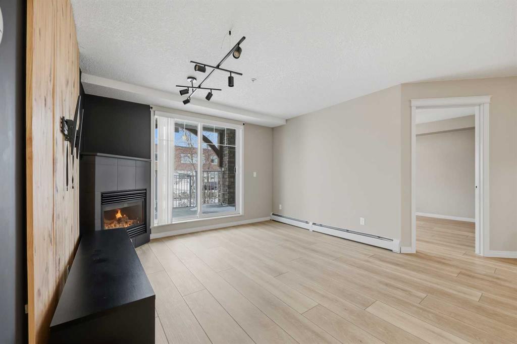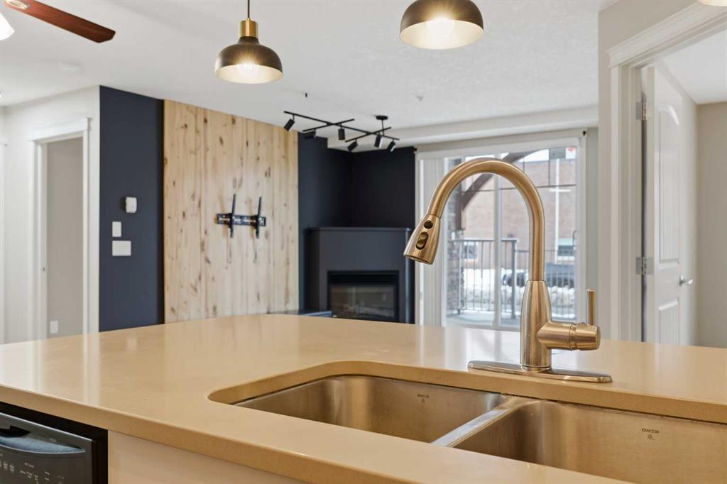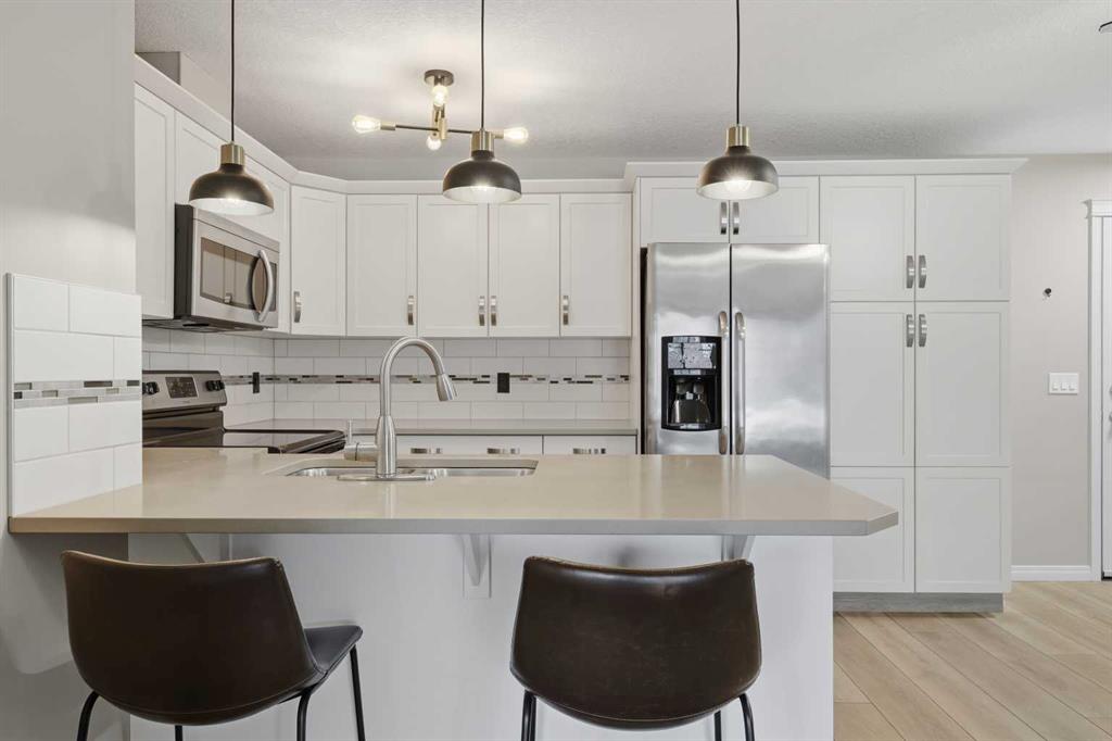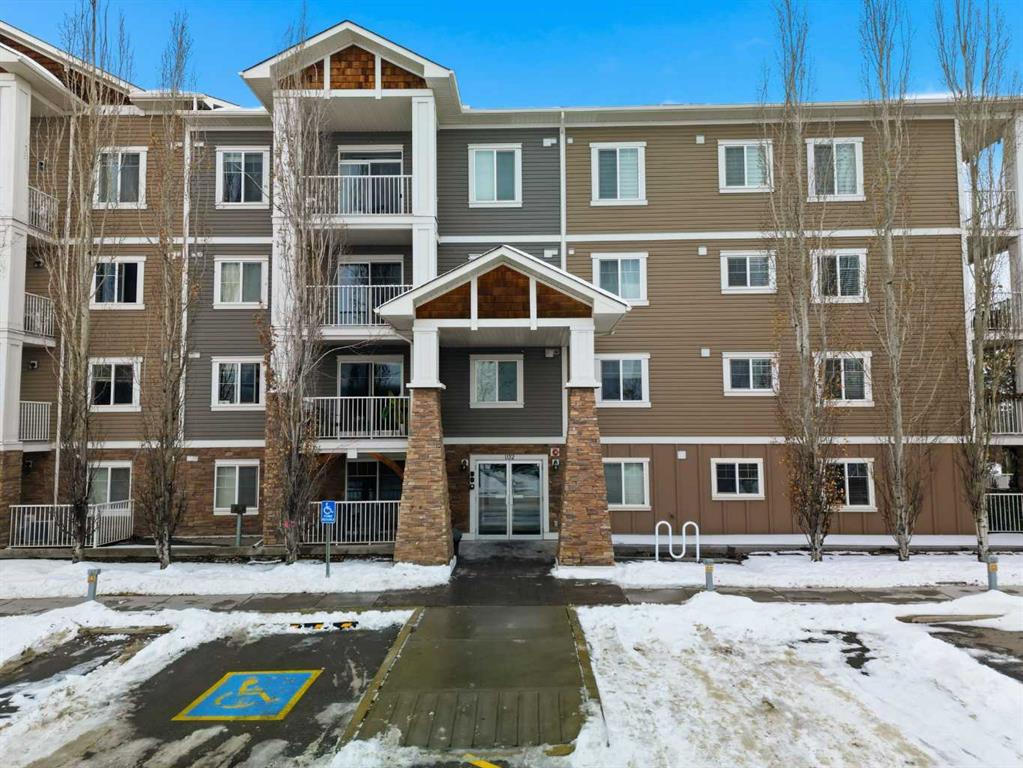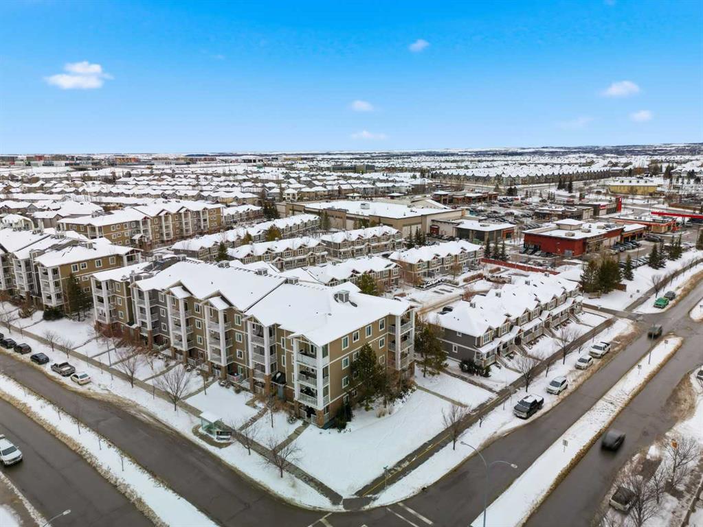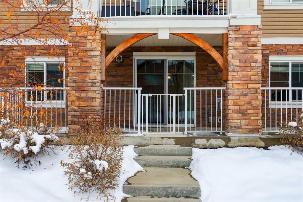 Discover unbeatable convenience in this bright and well-kept 2-bedroom, 2-bath main-floor unit in Cranston Place: a rare street-level patio entrance gives this condo the feel of a detached home. The spacious patio opens directly to the sidewalk and is conveniently located right across from Dr. George Stanley School (Grades 5–9), making this a fantastic fit for families with older elementary or junior-high children. Inside, the open-concept layout is warm and inviting with quartz countertops, stainless steel appliances, ample cabinetry, and luxury vinyl plank flooring throughout. The living room features a cozy gas fireplace; the primary bedroom boasts a walk-in closet and private ensuite, while a second bedroom and full bath offer ideal separation for guests, roommates or a home office. Additional conveniences include a generous in-suite laundry room, titled underground parking, and an assigned storage locker. The location offers quick access to local amenities: nearby green spaces, parks, walking paths, shopping, transit connections, and major roadways. Well-managed and low-maintenance, this complex delivers exceptional value in one of Calgary’s sought-after communities. Don’t miss the opportunity to own a rare ground-floor home-style unit in Cranston with true street access and unbeatable convenience.