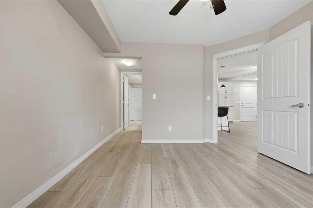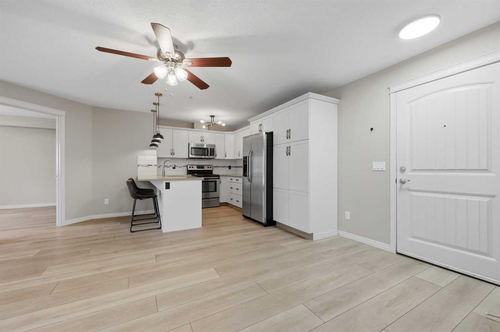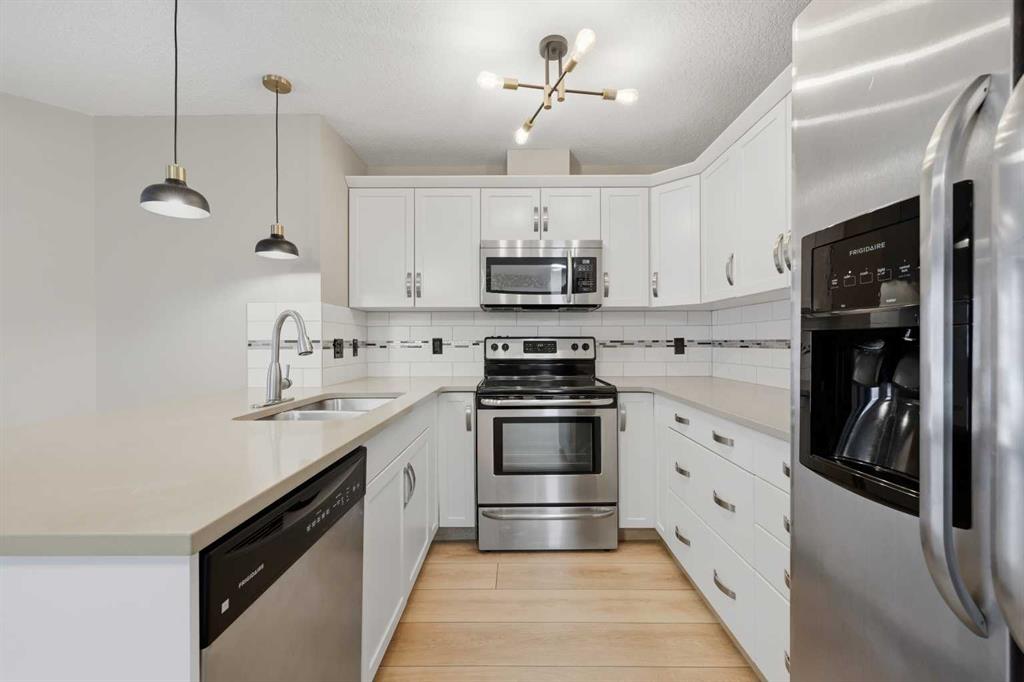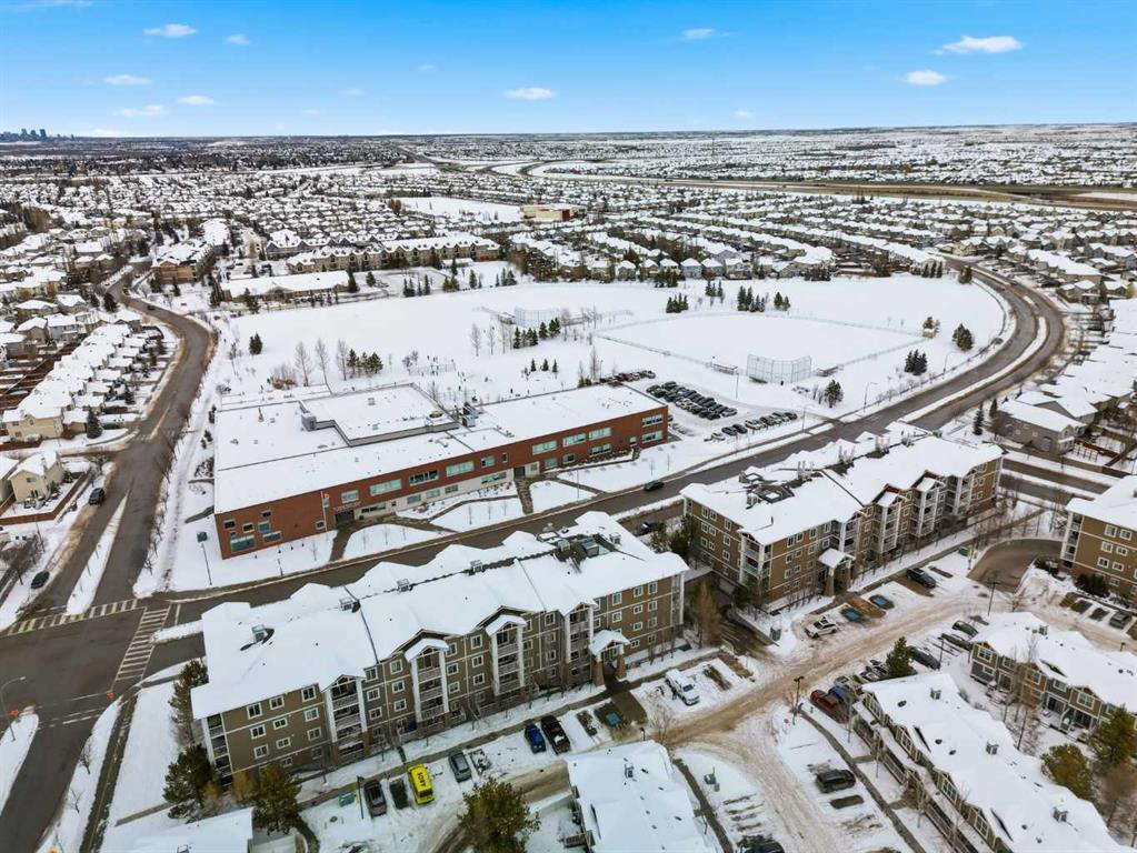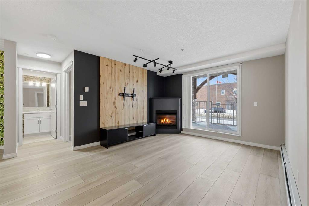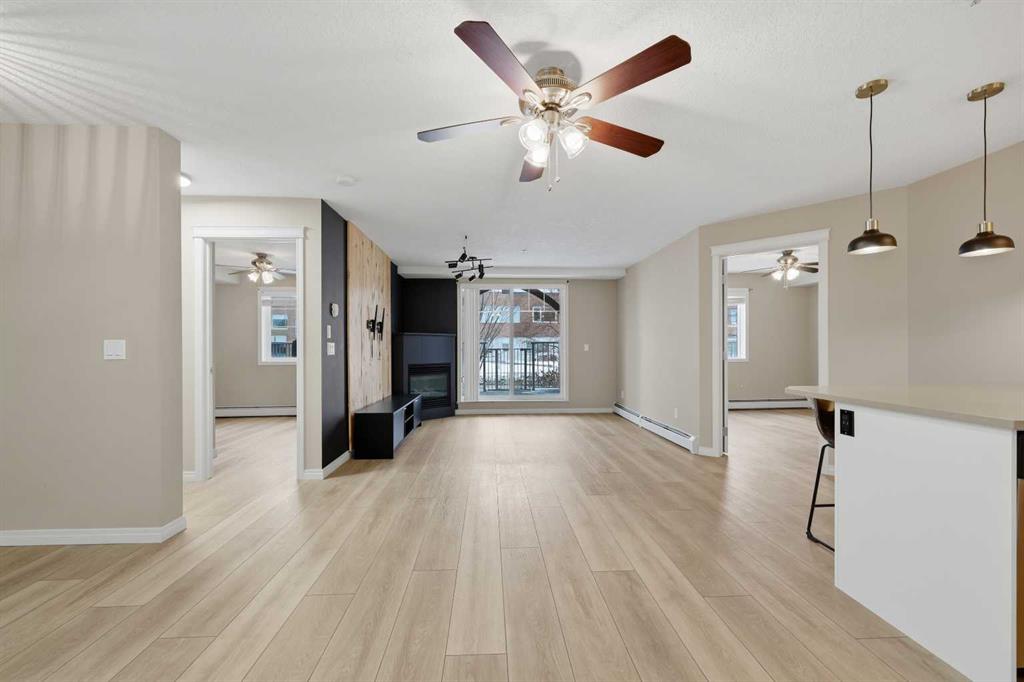 Discover unbeatable convenience in this bright and well-kept 2-bedroom, 2-bath main-floor unit in Cranston Place: a rare street-level patio entrance gives this condo the feel of a detached home. The spacious patio opens directly to the sidewalk and is conveniently located right across from Dr. George Stanley School (Grades 5–9), making this a fantastic fit for families with older elementary or junior-high children. Inside, the open-concept layout is warm and inviting with quartz countertops, stainless steel appliances, ample cabinetry, and luxury vinyl plank flooring throughout. The living room features a cozy gas fireplace; the primary bedroom boasts a walk-in closet and private ensuite, while a second bedroom and full bath offer ideal separation for guests, roommates or a home office. Additional conveniences include a generous in-suite laundry room, titled underground parking, and an assigned storage locker. The location offers quick access to local amenities: nearby green spaces, parks, walking paths, shopping, transit connections, and major roadways. Well-managed and low-maintenance, this complex delivers exceptional value in one of Calgary’s sought-after communities. Don’t miss the opportunity to own a rare ground-floor home-style unit in Cranston with true street access and unbeatable convenience.