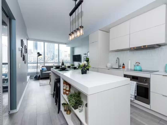 Inside, the bright open-concept layout connects the living and dining areas seamlessly, with a functional galley-style kitchen featuring a pass-through for added light and flow. Recent updates include durable vinyl plank flooring and modern lighting, giving the home a fresh, move-in ready feel.