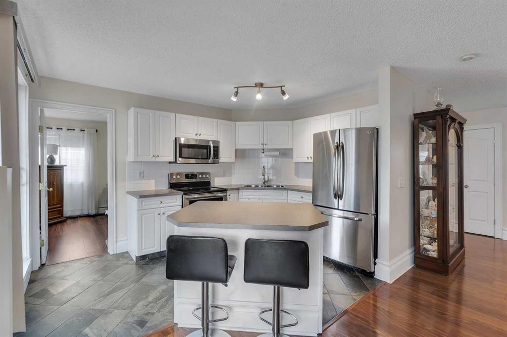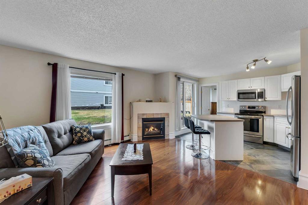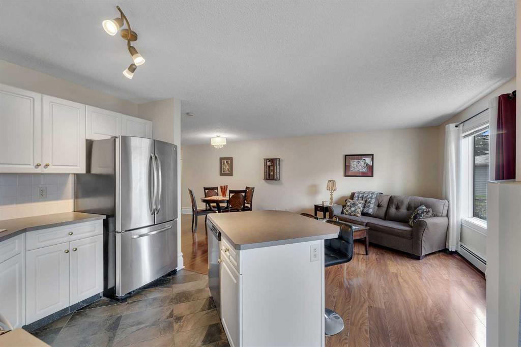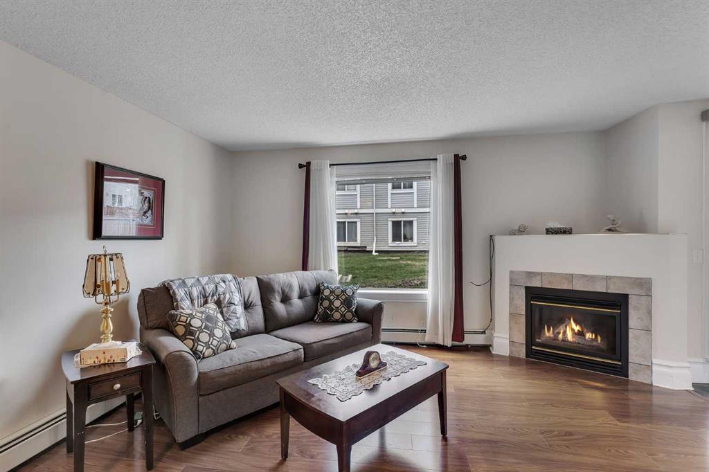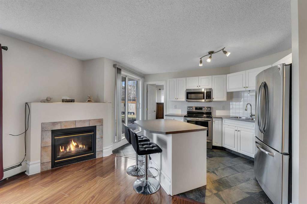 Welcome to this beautifully maintained 2-bedroom, 2-bathroom ground-level end unit offering comfort, convenience, and an abundance of natural light. Located in an established community, this home is perfect for first-time buyers, downsizers, or investors alike. Step inside to a welcoming foyer complete with a convenient closet for coats and shoes. Just beyond, you’ll find a dedicated in-unit laundry area with additional storage, keeping everything organized and easily accessible. The spacious dining area is filled with natural light thanks to the unit’s end position, creating a bright and inviting atmosphere for everyday meals or entertaining guests. The open-concept layout seamlessly connects the dining room to the kitchen and living room. The cozy living area features a fireplace, perfect for relaxing evenings, while the well-appointed kitchen boasts stainless steel appliances, a large pantry, a functional island, and ample cabinet and counter space, ideal for cooking and hosting. From the living room, step out onto your west-facing patio, complete with a gas line for your BBQ. Enjoy sunny afternoons and warm evenings in your private outdoor space. The primary bedroom is generously sized and offers a walk-in closet and a private 4-piece ensuite, providing a comfortable retreat. A second well-sized bedroom and an additional 4-piece bathroom add flexibility for guests, family, or a home office. This unit also includes titled, heated underground parking, ensuring comfort and security year-round. The condo fee covers HEAT, WATER, ELECTRICITY & MORE. Ideally situated with quick access to major routes such as Deerfoot Trail, Peigan Trail, and Barlow Trail, commuting is a breeze. You’ll also appreciate being close to schools, parks, shopping, restaurants, and other everyday amenities. This bright and functional home checks all the boxes… don’t miss your opportunity to make it yours!