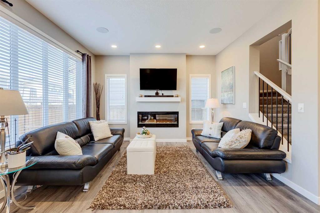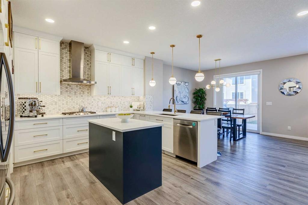 | RARE 3RD-FLOOR LOFT | MINUTES TO PARKS & SCHOOLS | LAKE COMMUNITY LIVING | Step into sophisticated family living where modern design, timeless finishes, and everyday function come together beautifully in one of Calgary’s most desirable lake communities. You’ll love the OPEN-CONCEPT MAIN FLOOR, designed for connection and comfort. At the heart of the home, a chef-inspired kitchen impresses with FULL-HEIGHT WHITE CABINETRY, soft-close drawers, and undermount lighting that highlights the stunning hexagon tile backsplash. A contrasting navy island with QUARTZ countertops, GAS COOKTOP, built-in wall oven and microwave, and large pantry complete this show-stopping space. The ISLAND WITH SEATING FOR 4 is perfect for casual meals or hosting friends. The BRIGHT DINING AREA flows seamlessly to the backyard deck, while the inviting living room offers a sleek fireplace and tons of NATURAL LIGHT, creating a warm yet sophisticated atmosphere. MAIN-FLOOR FLEX SPACE is ideal for a home office, music room or formal dining space…whatever you need. Powder room and MUDROOM with garage access add everyday convenience. Upstairs, discover 4 SPACIOUS BEDROOMS, including a luxurious primary suite with a large walk-in closet and spa-inspired ensuite featuring dual sinks, a deep soaker tub, and a glass-enclosed shower. A 5-piece main bath and upper-level LAUNDRY ROOM with extra storage make family life effortless. The 3RD-FLOOR LOFT is a rare and versatile bonus — ideal as a media lounge, home office, or teen retreat, complete with a full 4-piece bath. The lower level offers endless potential for FUTURE DEVELOPMENT, with plenty of room for a recreation area, gym, or guest room. 2 AIR CONDITIONING UNITS. Set on a quiet street just MINUTES FROM MAHOGANY’S PARKS, PATHWAYS, AND THE LAKE, this home combines style, comfort, and thoughtful design in every detail. This is modern family living at its finest. Don’t miss out!