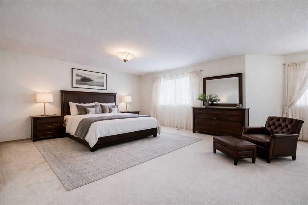 Impressive 7 Bedroom + 4 Bathroom home in the sought-out neighborhood of Signal Hill has over 4600+sqft of living space. This home offers great opportunities for your family or multi-generation families. The large foyer with 10ft ceilings greets you as you enter with a grand staircase. Enjoy dinners with your family and friends in the formal dining room that is joined by the west facing living room adorned by large windows bringing in tons of natural sunlight. Kitchen has stainless steel appliances, generous sized pantry that is open to large breakfast nook and family room. Charming stone wall with wood burning fireplace for chilly nights surrounded by real wood built-ins. A unique feature of this home is a main floor bedroom which is a rare find in a 2-storey home. Great for people with mobility challenges as there is 4pc bathroom and main laundry room. This bedroom could also be used as office or den. Upstairs you will find the luxurious primary bedroom with room enough for the largest of beds, a walk-in closet, a seating/reading area for relaxing. 5pc primary bathroom has double sinks, jetted tub, stand-up shower, water closet. The primary bedroom is its own private retreat. The basement is its own spacious living area consisting of 2 bedrooms, kitchen, rec room, bonus room, and 4pc bathroom. There is potential subject to city approval to possibly convert the basement to a Legal suite. The home has an attached and insulated double garage. This unique home is mostly in original condition and has been well maintained. Some previous updates. You can comfortably live in this home while making your own changes (small or big) or ready for total makeover right from the start. Signal Hill is a Southwest Calgary community recognized for its stability, elevation, and long-term value retention, filled with executive homes. The community attracts discerning professionals and investors seeking quality homes in established locales. The neighborhood benefits from immediate access to major commuter routes, public transit, and a full array of retail, dining, and service providers. Its proximity to top-tier schools, green spaces, bike/walk pathways further reinforces its desirability. With limited new development and sustained buyer demand, Signal Hill offers both lifestyle value and long-term appreciation. Situated on a corner lot with beautiful backyard, great for outdoor enjoyment. This home has so much potential for your family/multi-generation family or investors. This is the perfect chance to make your perfect home. It’s a definite MUST-SEE, don’t miss this opportunity! *some images are virtual staged to show furnished setting*